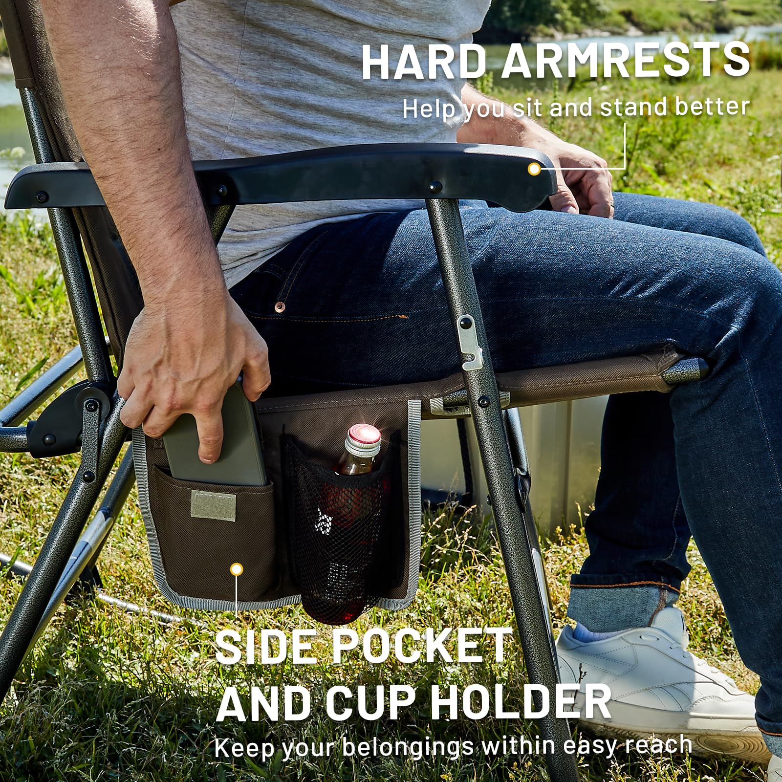 • VERSATILE DESIGN: Featuring wide armrests for easy transitions, side pockets for essentials, and a safety latch for quick folding and unfolding, this chair is designed for your convenience