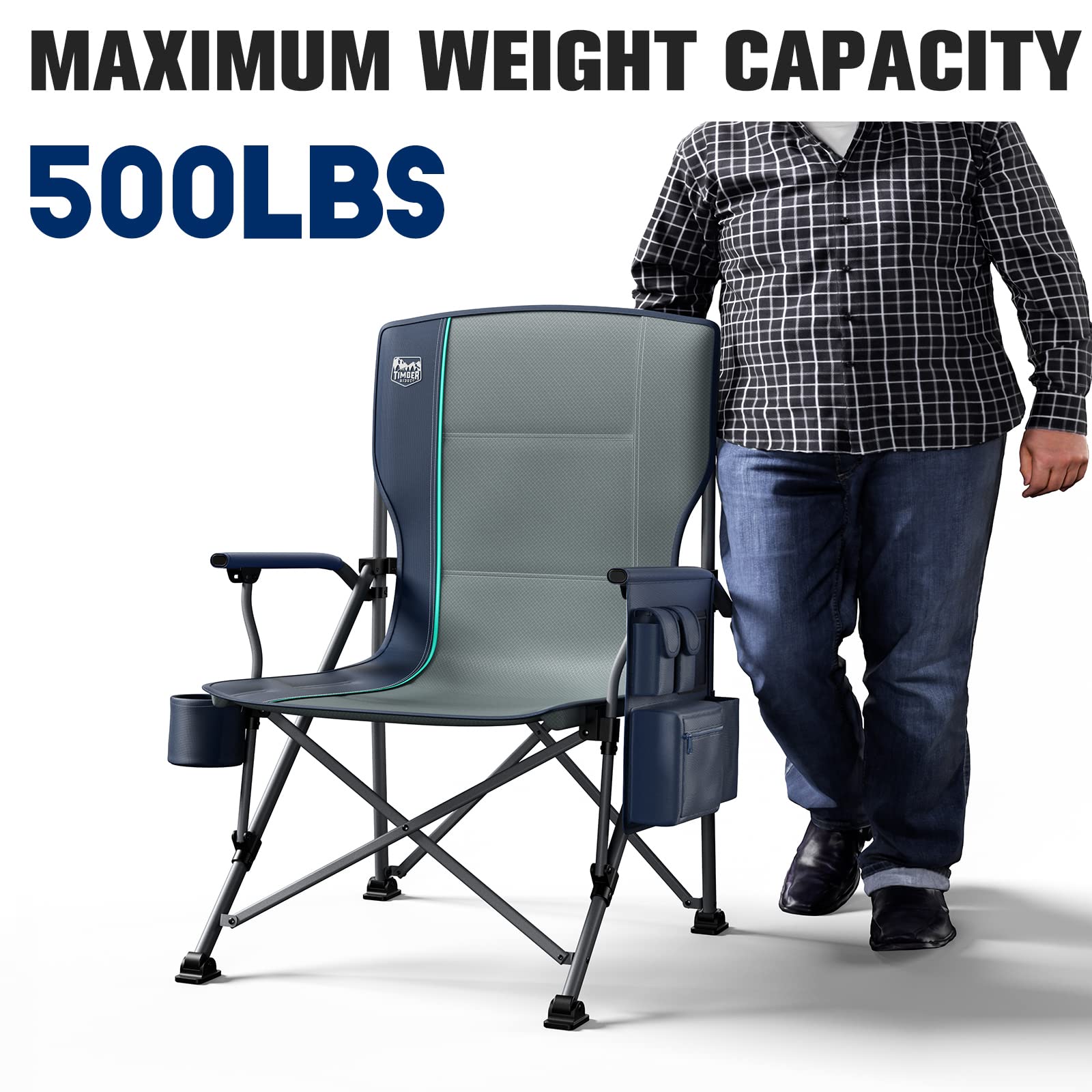 TIMBER RIDGE Oversized Folding Camping Chair High Back Heavy Duty for Adults Support up to 500lbs with Cup Holder, Side Pocket Cooler Bag