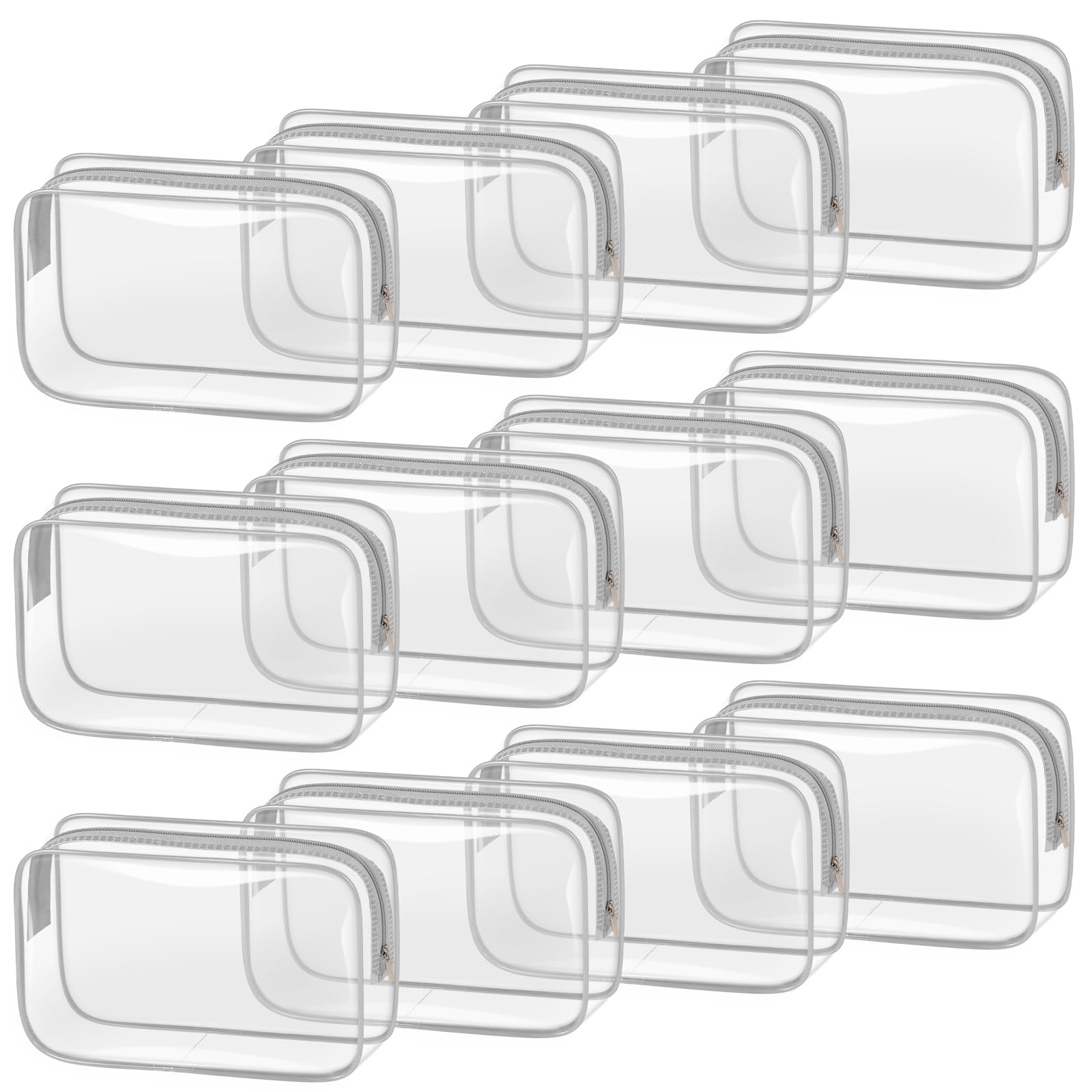 TISRATOK 12 PCS Clear Makeup Bag for Women with Zipper, TSA Approved Toiletry Pouch, Cosmetic Bag Bulk for Travel Organizer Essentials - Grey,Medium