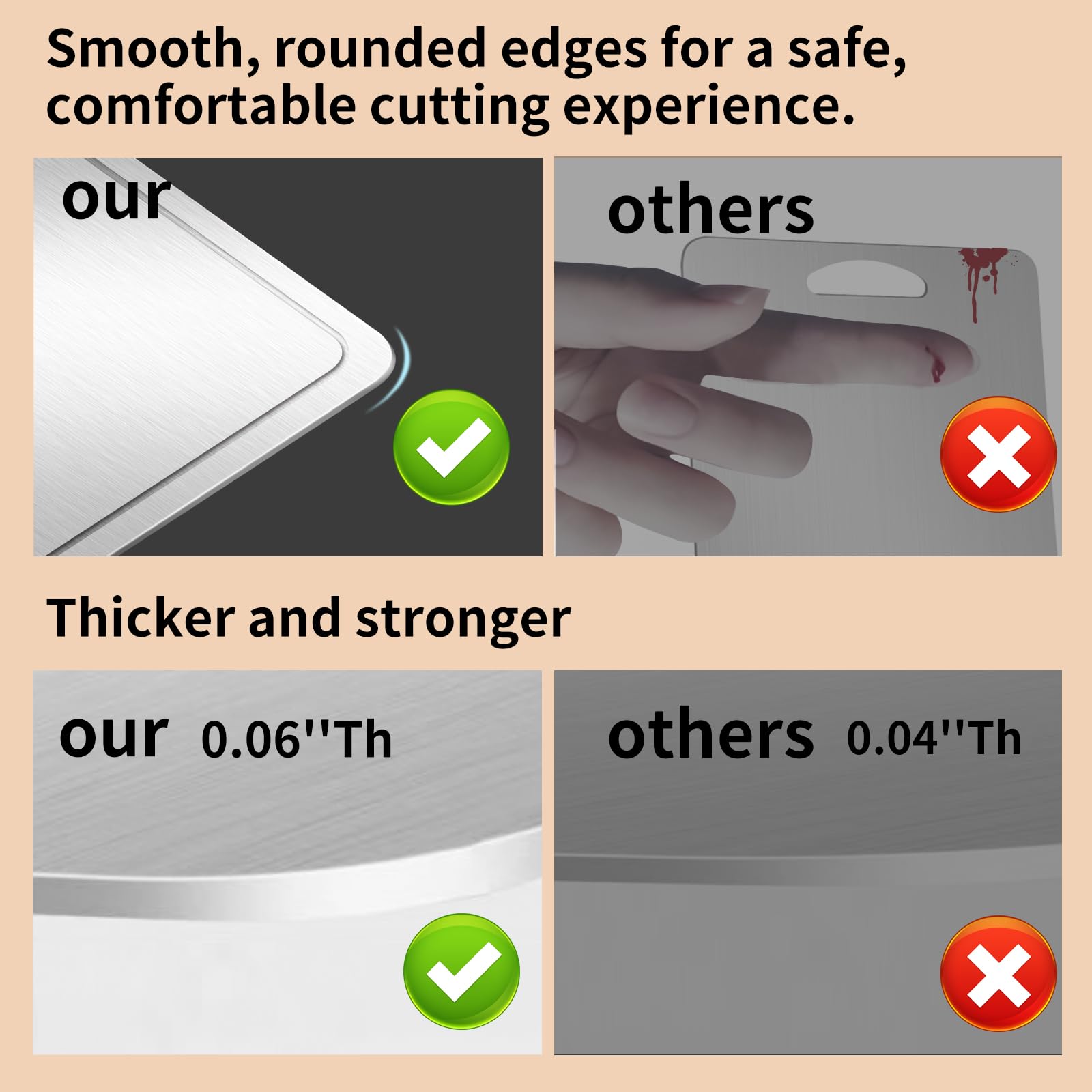 • 【SMOOTH, SAFE EDGES】: Unlike most titanium cutting boards, ours features smooth, rounded edges that won't easily scratch hands, providing a comfortable cutting experience.