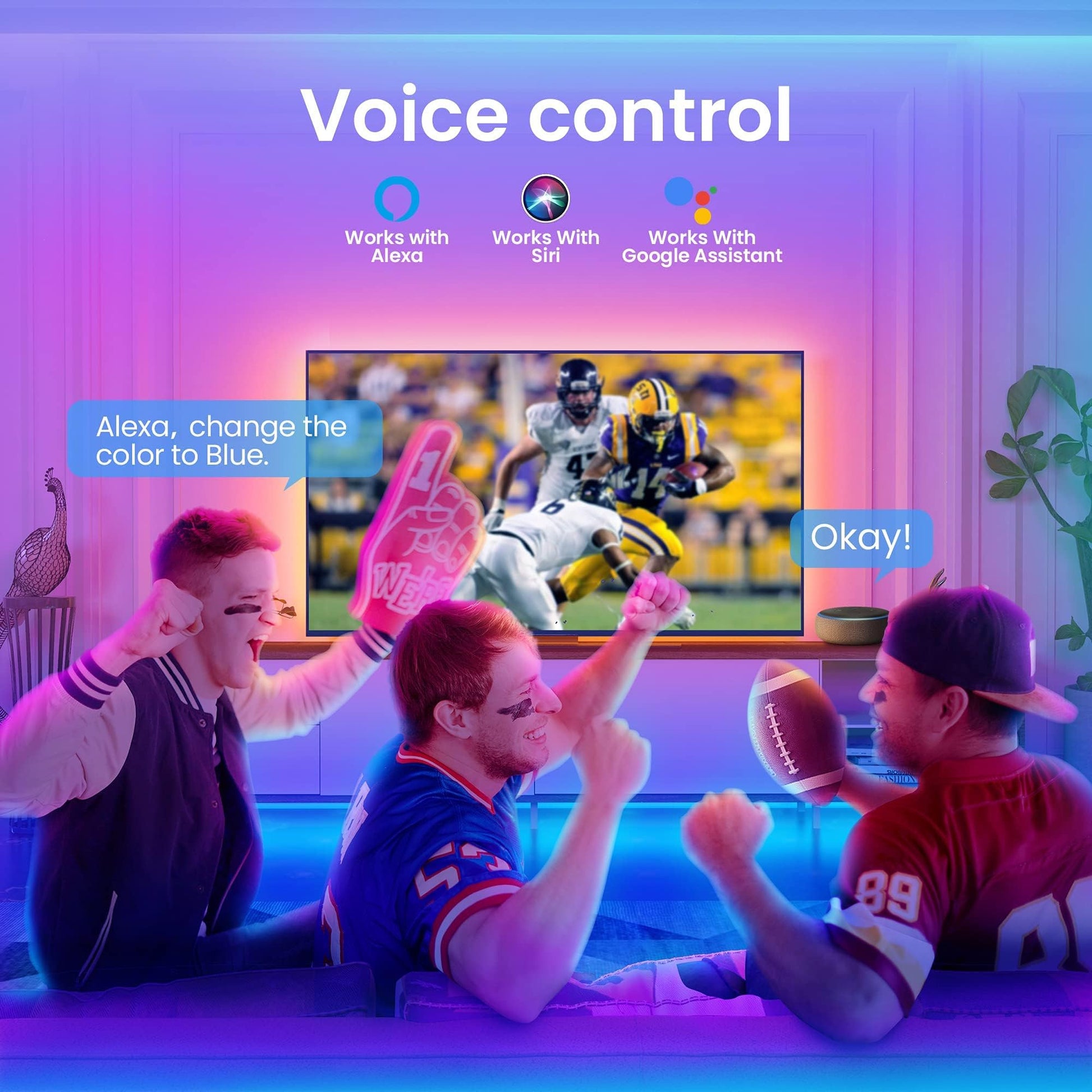 • Voice & Smartphone Control:The smart led strip lights is no longer needs to be controlled by hand. It works with Alexa echo and Google assistant, you can control the functions of this led strip lights through voice, which must be controlled by remote control before. Besides, you can turn your led lights on and off, adjust color and brightness wherever you are. [Not support 5g wifi]