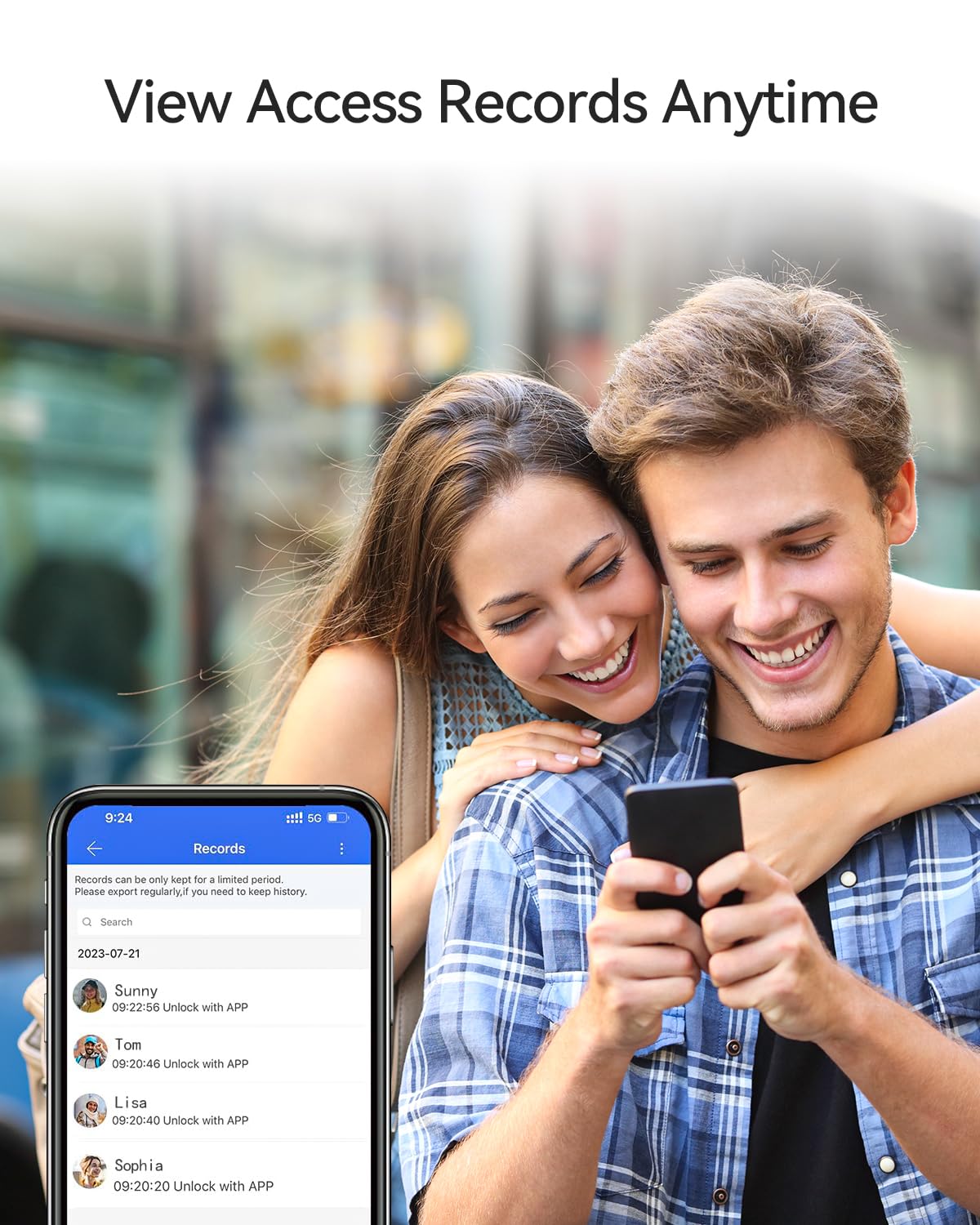 • [TUYA APP Smart Control]: You can lock/unlock door, share E-codes, check Log records, alert prompt, manage users via TUYA Bluetooth App to unlock and manage your smart door lock more convenient anywhere anytime. (Not WIFI, No any fees charged for the APP)