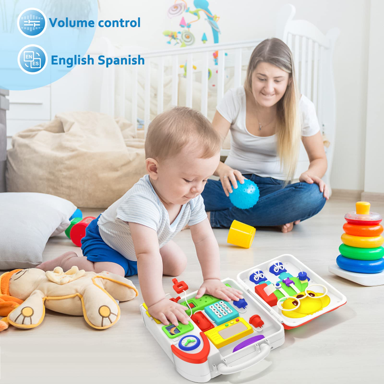 Toddler Toys for 1-2 Year Old Boy, Musical Montessori Busy Board, Early Educational Toy for Toddlers 1-3, Motor Skills Developmental Toy for 12-18 Month Age, Birthday Gift for 1+ Year Old Boy Girl