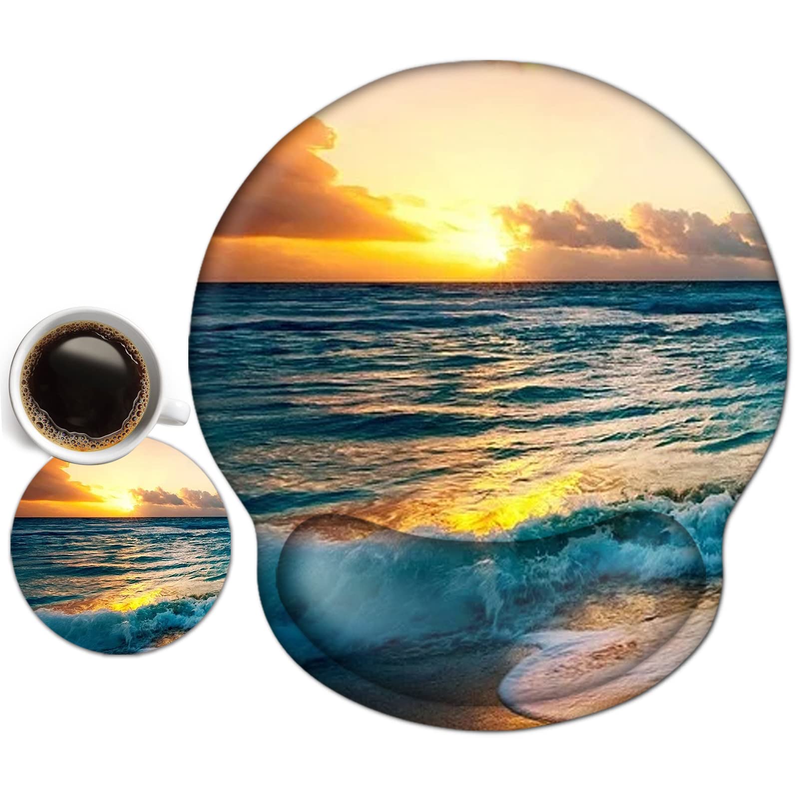 ToLuLu Mouse Pad Wrist Rest Support Gel, Ergonomic Mouse Pads with Non Slip PU Base, Mouse Wrist Rest Pad for Laptop Computer Home Office Working Gaming Pain Relief, Sunset& Beach