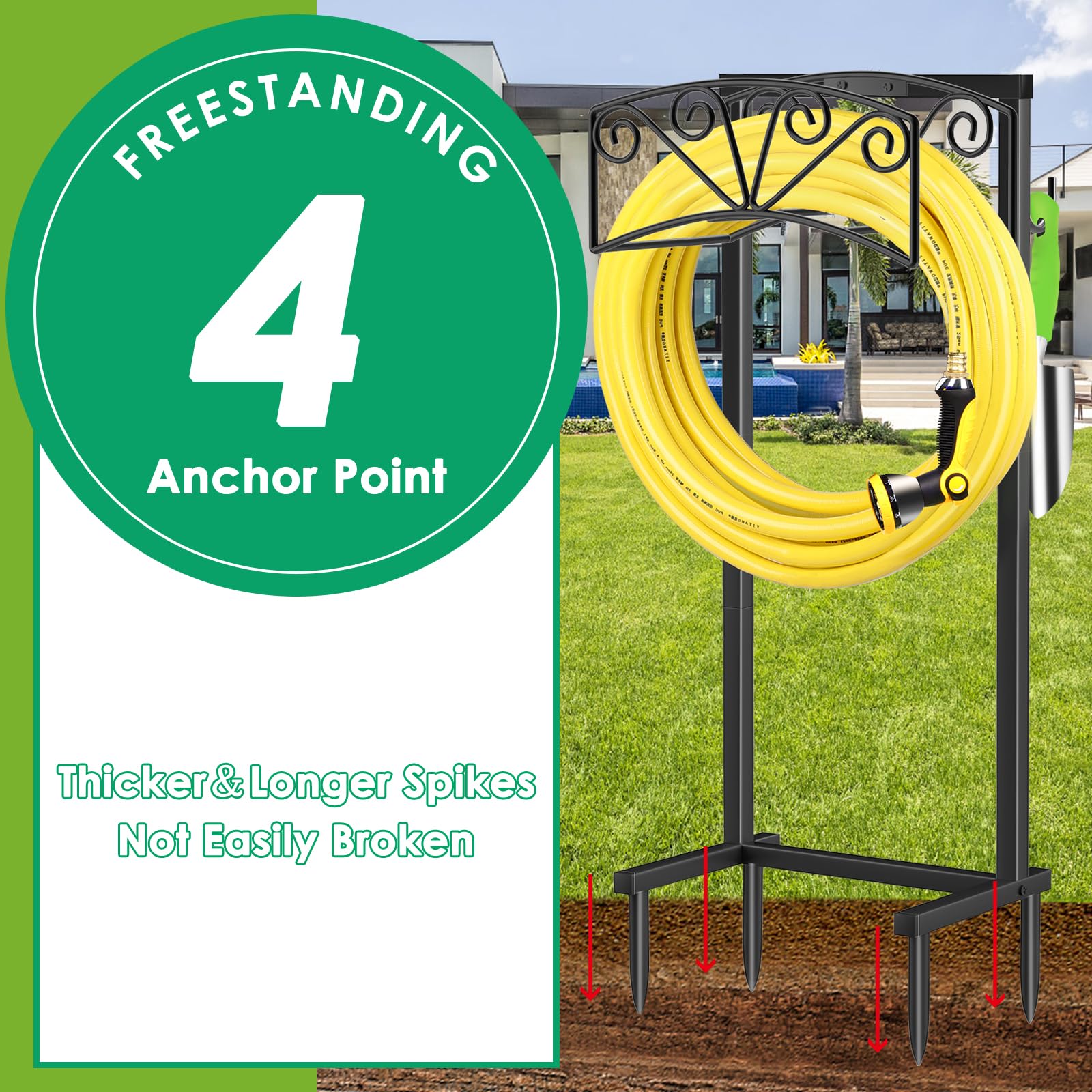 • 【UPGRADED 4 SPIKES】TomCare new garden hose holder is super heavy duty with 4 large spikes to hold it in the ground, which provides the hose reel stronger support and make it is no risk of the rack tipping over. Just what you needed for large back yard.