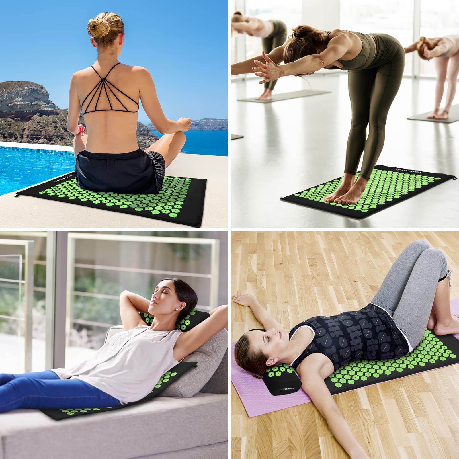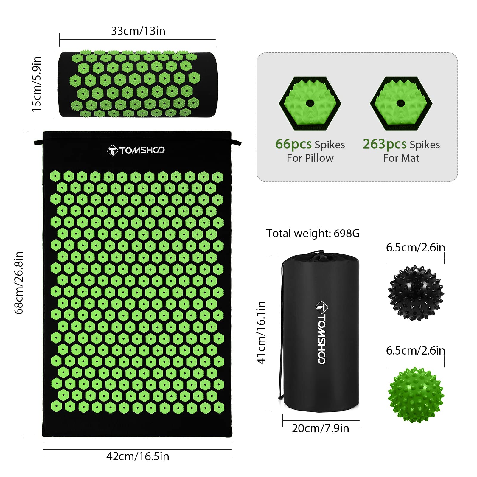TOMSHOO Acupressure Set, Acupressure Mat and Pillow with 2pcs Massage Balls- Pain Relief Therapy Muscle Back Neck with Travel Bag for Men and Women
