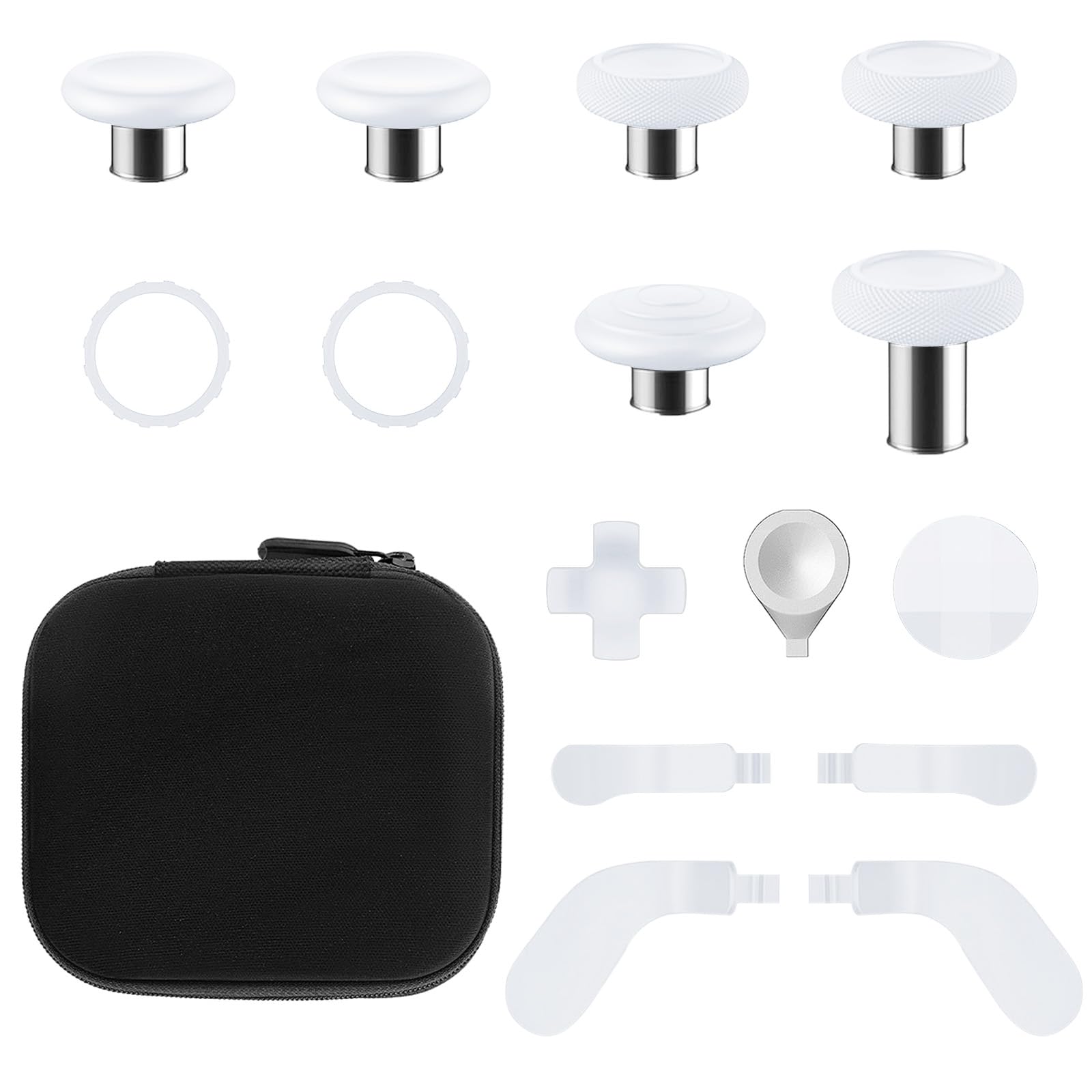 TOMSIN Thumbsticks&Paddles for Xbox Elite 2 Controller,15 In 1 Accessories Pack with Case for Xbox Elite Controller Series 2 Core,6 Metal Thumbsticks,4 Paddles,2 D-pad,Protection Rings (White)