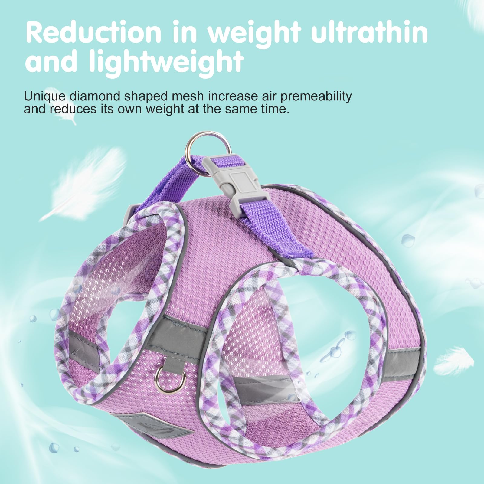 • Light & Breathale; The dog harness is made with jacquard fabric, which is high-density, breathable, three-dimensional, soft and comfortable, and can prevent chewing or tearing. It has extremely high durability, tensile resistance, tear resistance and fusion resistance. It has the characteristics of moisture absorption and perspiration, creating dryness, giving pets an extraordinary wearing experience.
