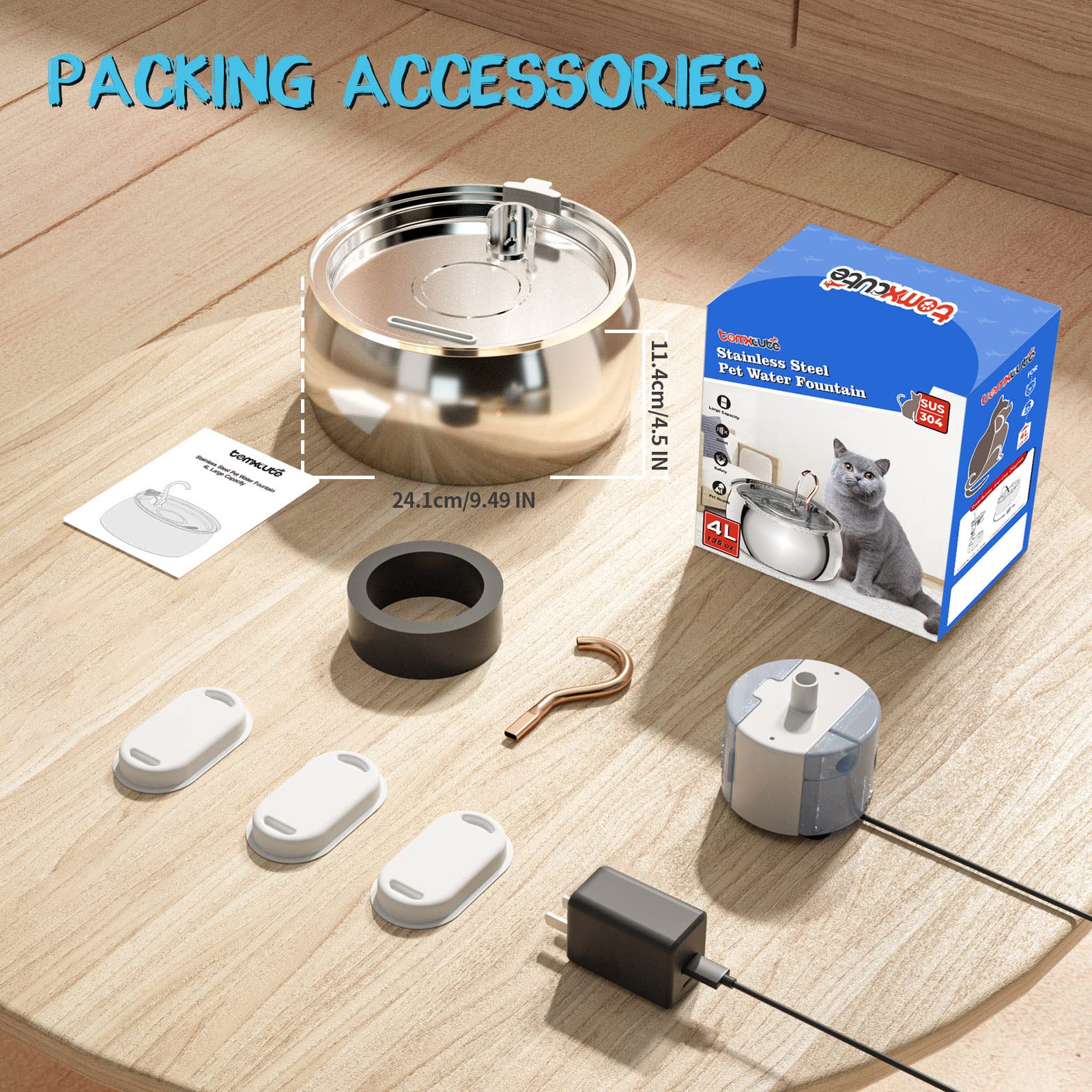 • 304 Stainless Steel: The cat water fountain is made of 304 stainless steel, and more durable and corrosion resistant. BPA-free and dishwasher safe, easy to clean.