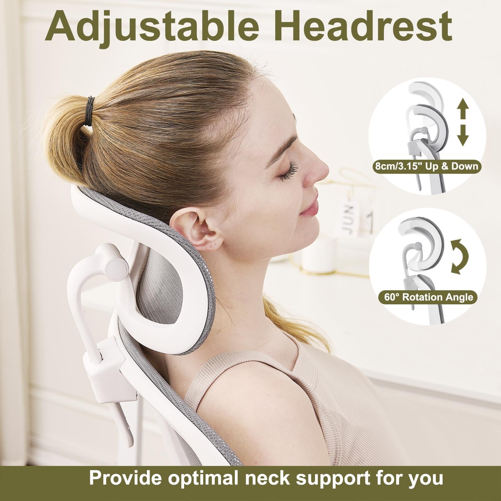 TONFARY Ergonomic Home Office Chair, High Back Mesh Desk Chair with Adjustable Lumbar Support, Flip-up Armrest, Removable Headrest, Swivel Computer Gaming Chair, Space Saving, 330LBS (White+Grey)