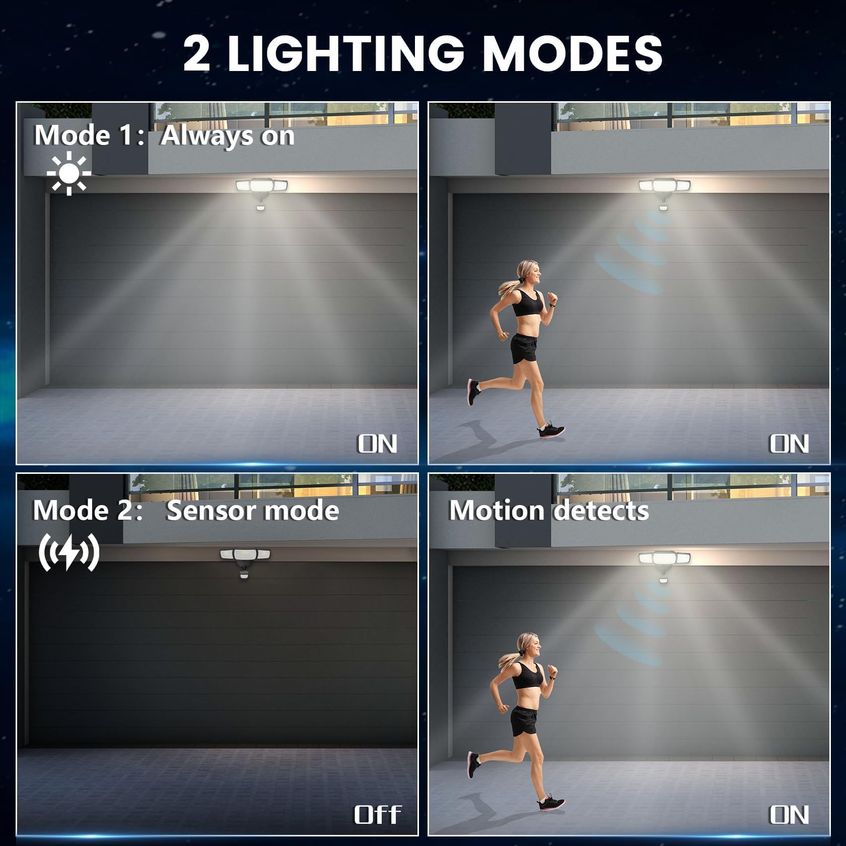 • Simple Installation & IP65 Waterproof:The outside flood lights is hard wired, it can be easily installed on walls or under eaves by following a few simple wiring steps. IP65 waterproof security light ensuring it can withstand rain, heat and frosts. The floodlight with sensor detection can work stably even at -20~50°C. Perfect to light up your yard, backyard, garage, porch, entryways, barn, shop, garden, stair or alley.