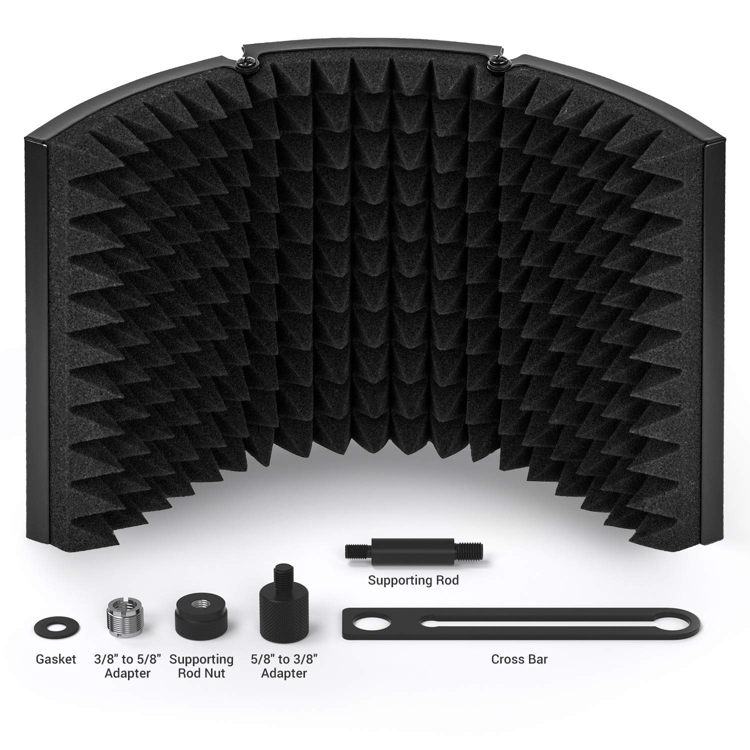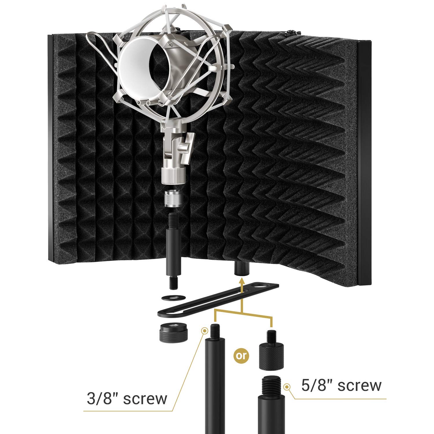 • Versatility: The microphone isolation shield can be fixed on a desk or tabletop, and also can be mounted to a microphone stand. Great for professional vocal/acoustic recording and podcasting sound booth.