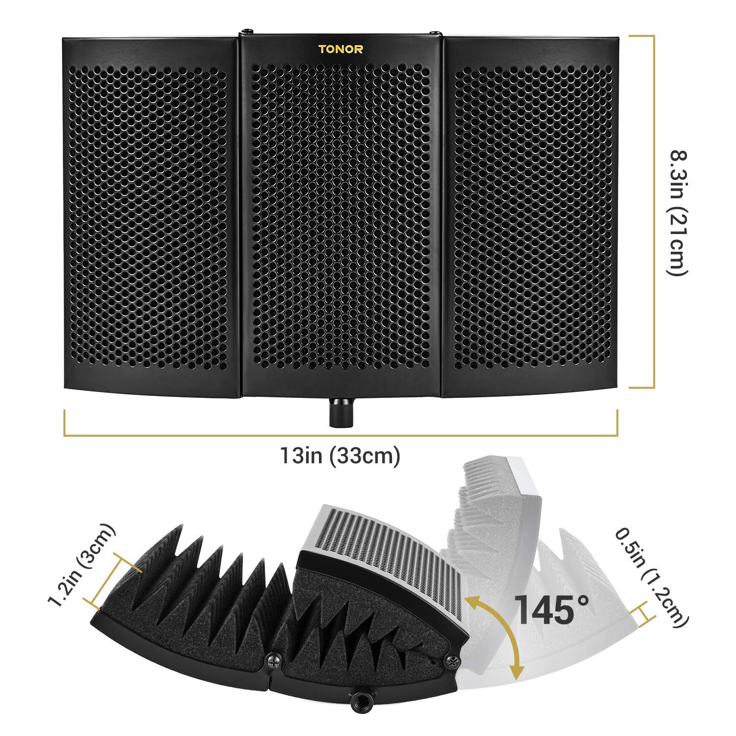 TONOR Microphone Isolation Shield, Studio Mic Sound Absorbing Foam Reflector for Any Condenser Microphone Recording Equipment Studio, Black