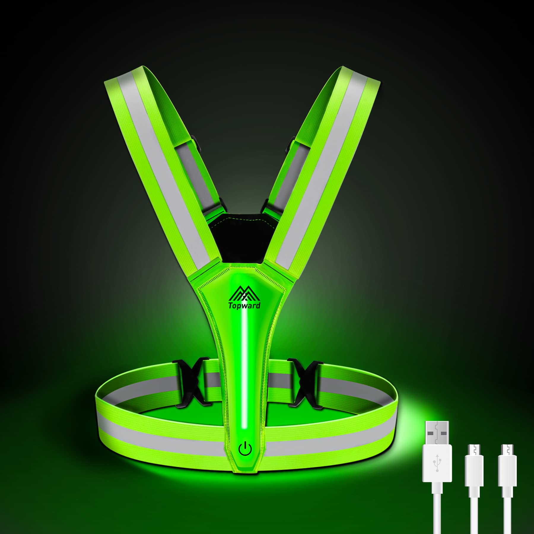 • BE SEEN FROM A LONG DISTANCE - Topward LED Reflective Vest is an upgraded, new generation safety vest with LED flash lights both in front and back; Keep you safe for running, (dog)walking, riding, skiing and motorcycle, etc.
