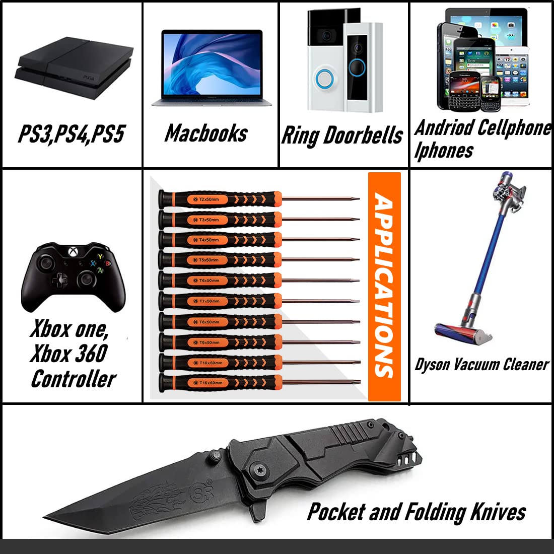 [WIDELY APPLICATIONS]: Widely used for Apple macbook, iphone, xbox controller,PS3,PS4,laptop,computer, game consoles,Mac mini,pocket knife,ring doorbell,dishwashers,shavers,routers and many electronic devices with torx screws.