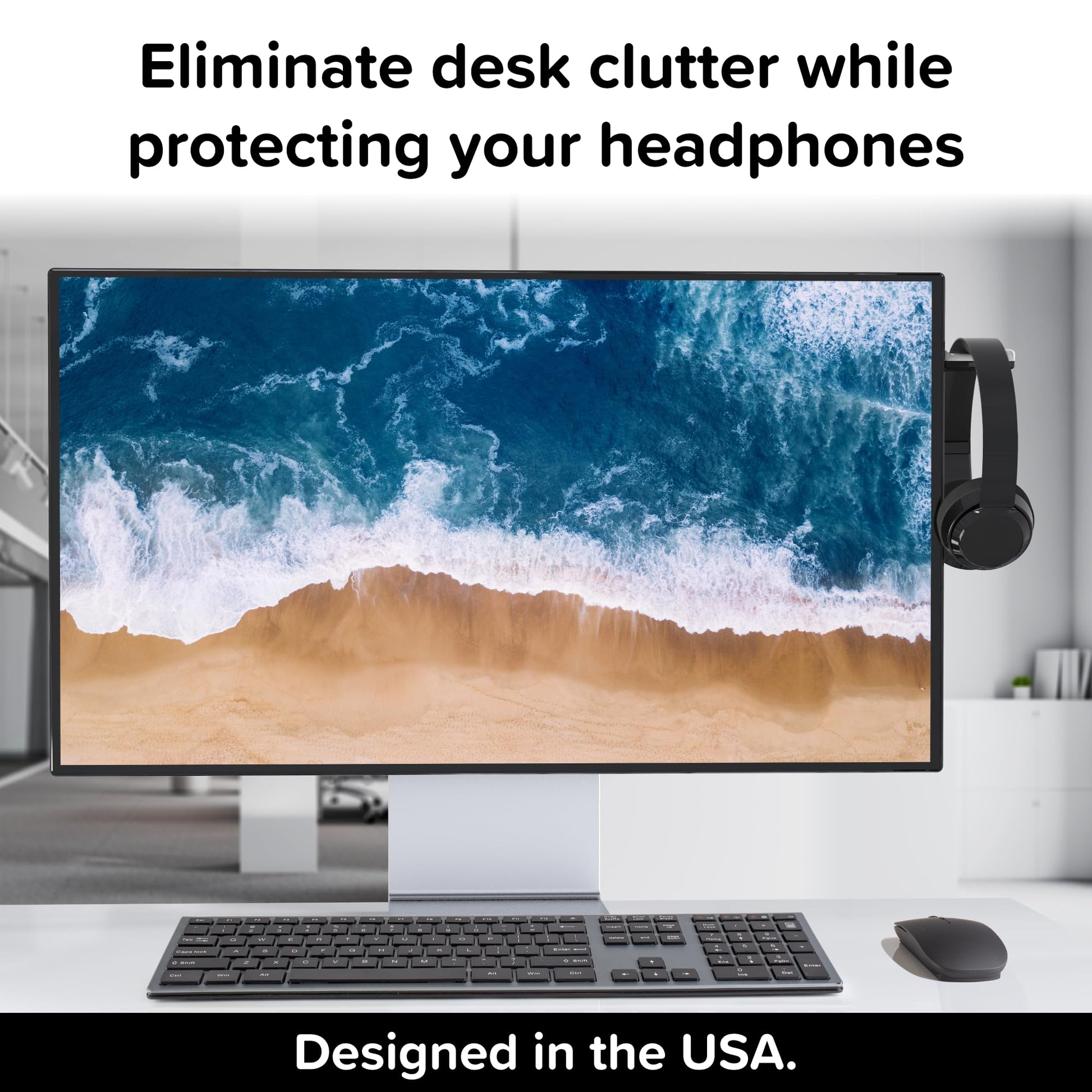 • Mounts your headphones to the left side or right side of your computer monitor to eliminate desk clutter while protecting your headphones.
