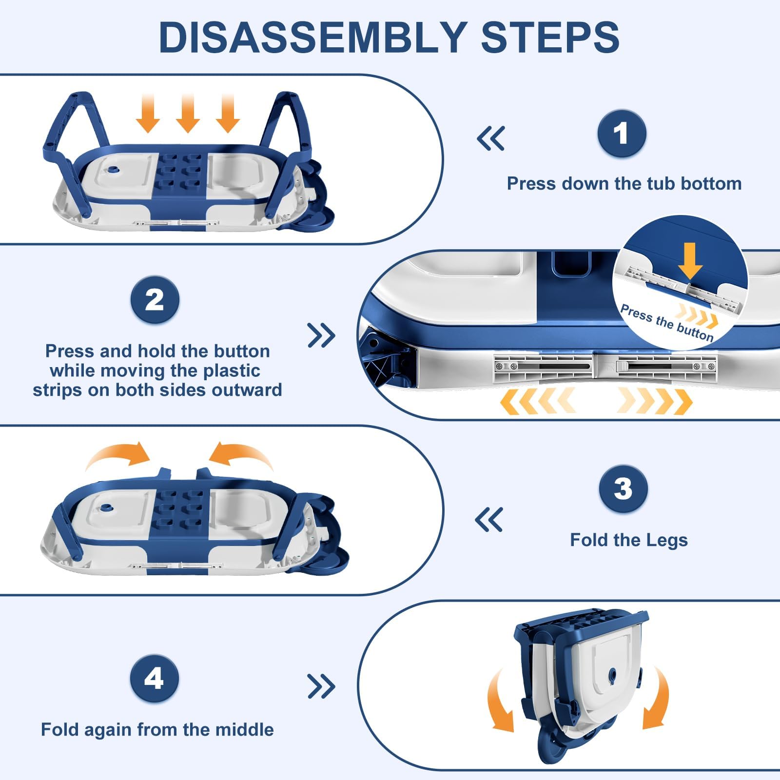 • Double-Fold Collapsible Design: TPN collapsible baby bathtub features an ingenious double-fold design, compactly measuring less than 4 inches in thickness. This facilitates effortless storage in any corner and enhances portability for on-the-go convenience, making it a perfect companion both at home and during travel. The off-the-floor drain with a user-friendly rubber plug guarantees seamless draining without the need for relocation.
