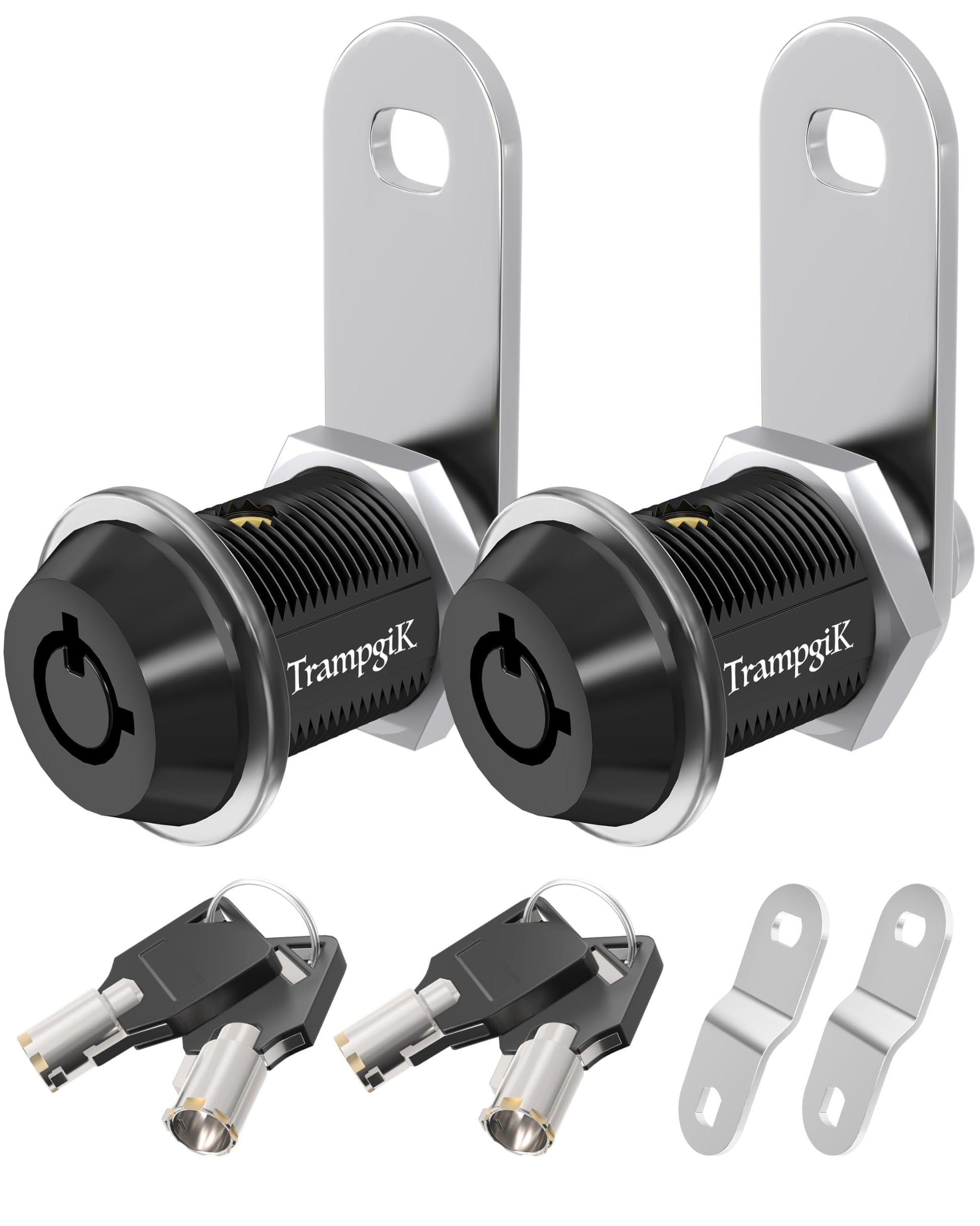 Trampgik RV Storage Locks, 7/8” Camper Compartment Storage Door Locks with Keys, for RV Camper Travel Trailer,Drawer Cabinet Toolcart Storage, 7/8 Inch 2 Locks with 4 Keyed Alike, Black