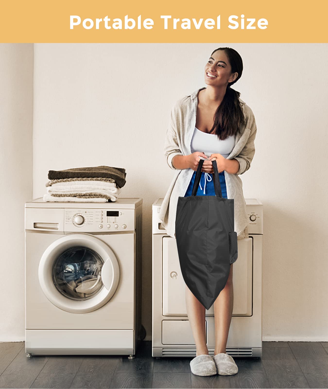 Travel Laundry bags, 2 Pack Dirty Laundry Travel Bag, Foldable Dirty Clothes Bag for Traveling, Washable and Small Laundry Bag with Handles for Suitcase, Gym, Camping, Black+Grey