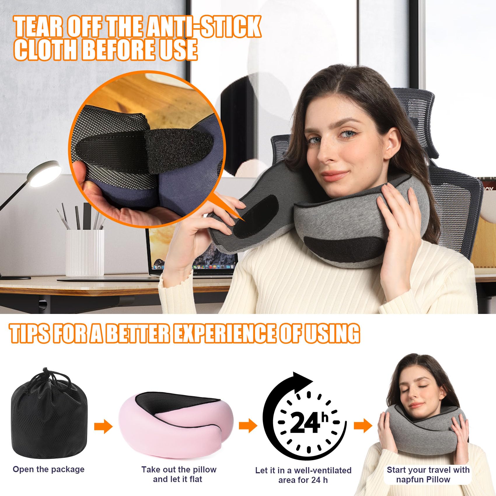 • 【Easy to store and carry】This memory foam neck pillow can be easily rolled up and stored in the storage bag. It can be hung on the luggage handle when traveling, and it will not take up too much space even if it is placed in the suitcase.
