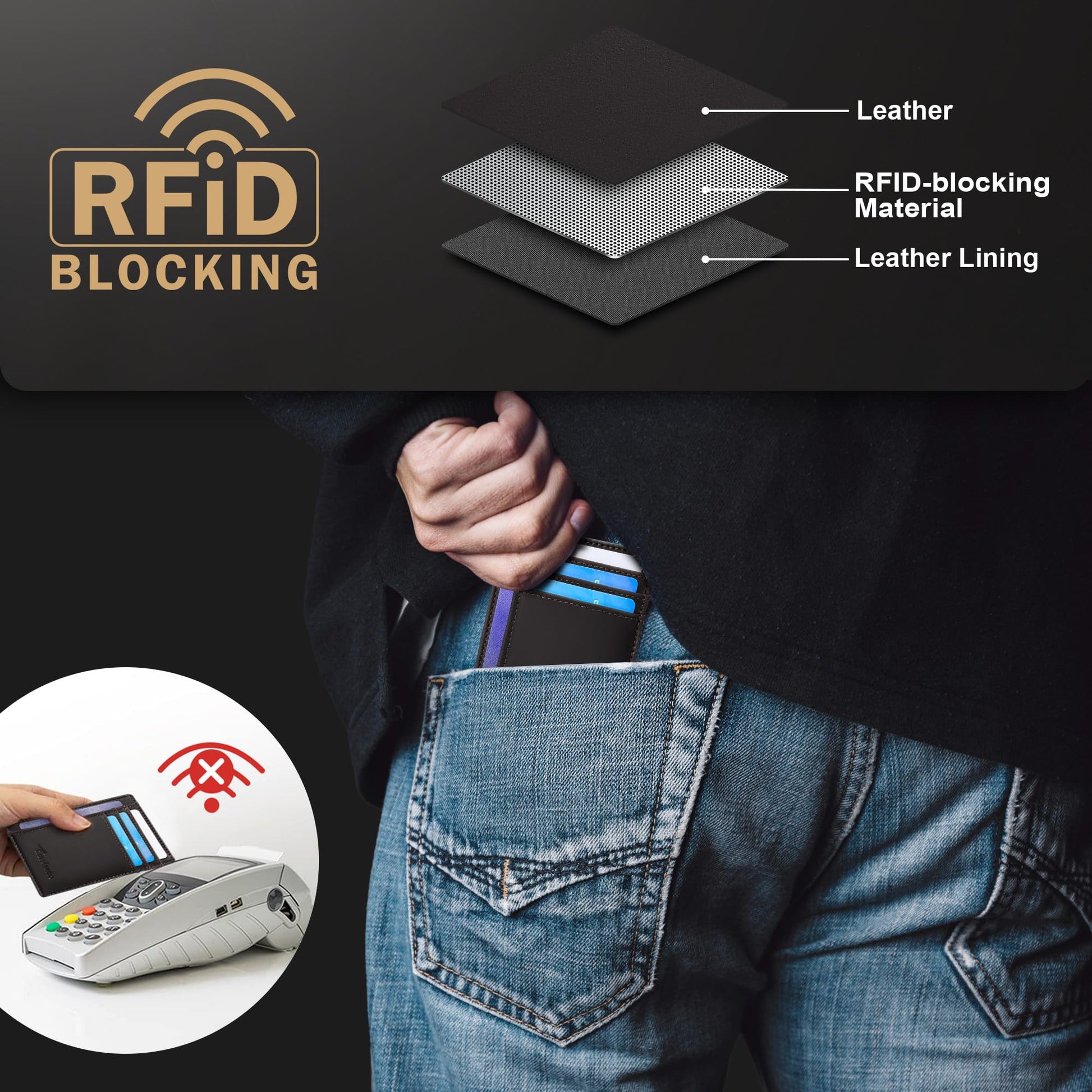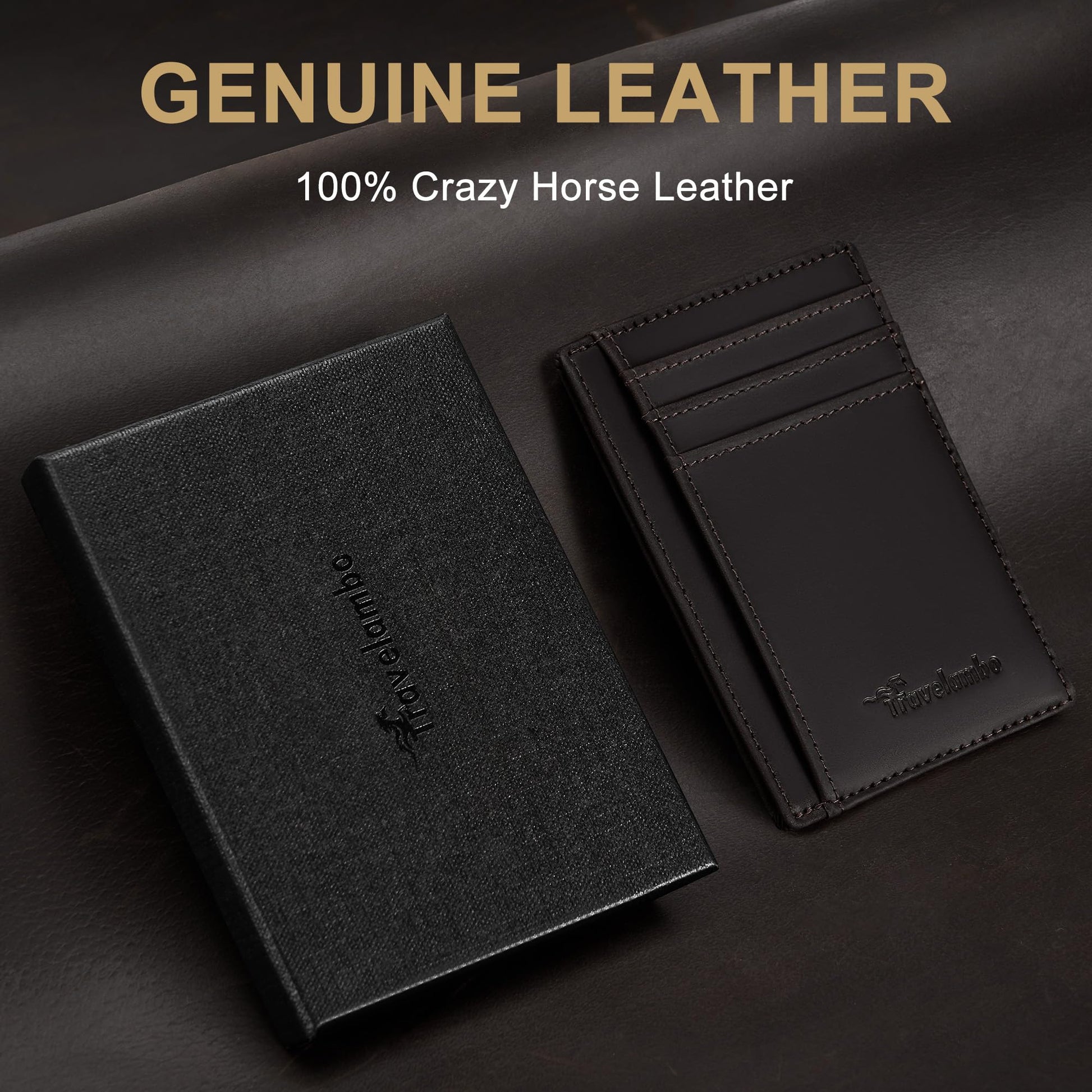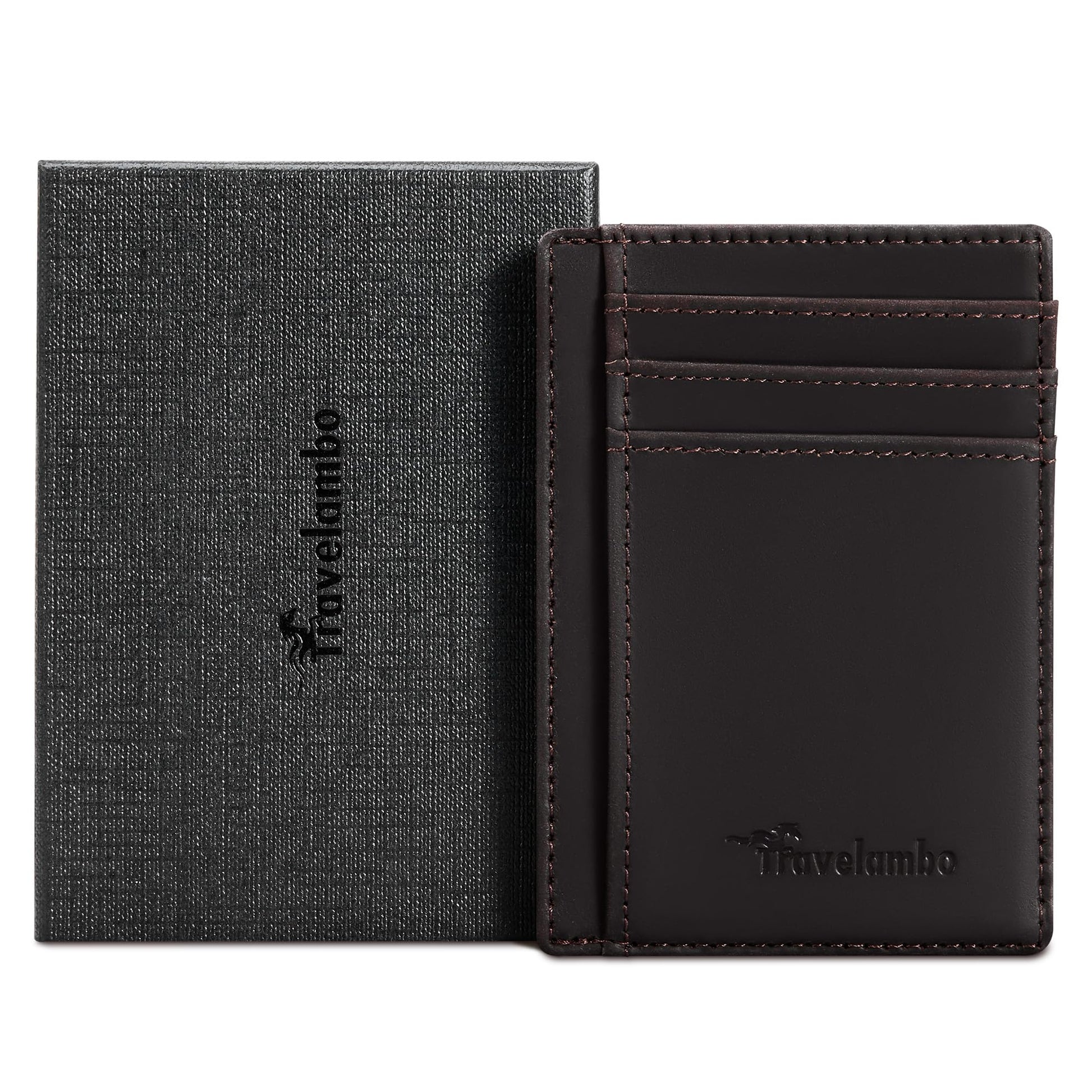 Travelambo Slim Wallet Front Pocket Minimalist Leather RFID Blocking Medium Size
