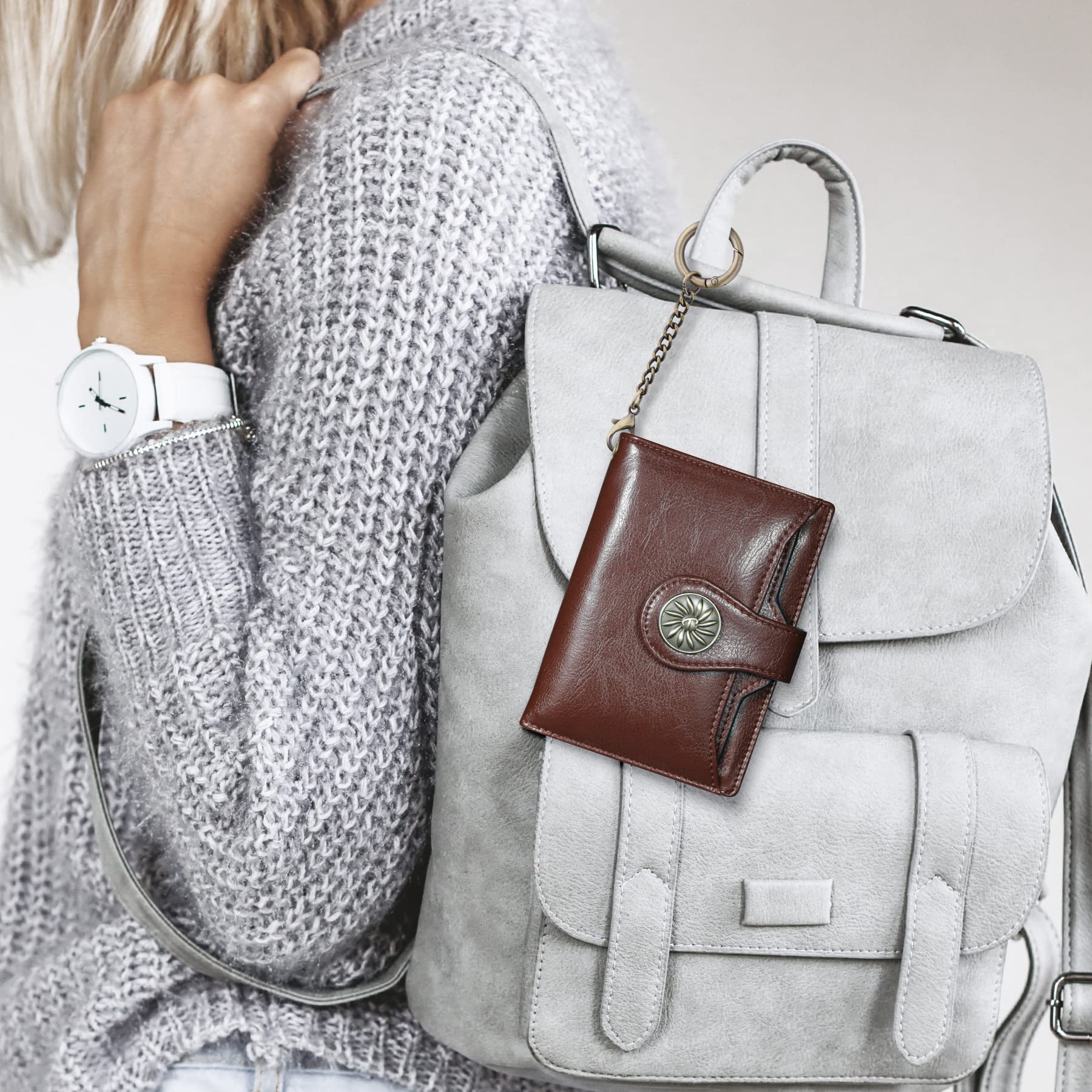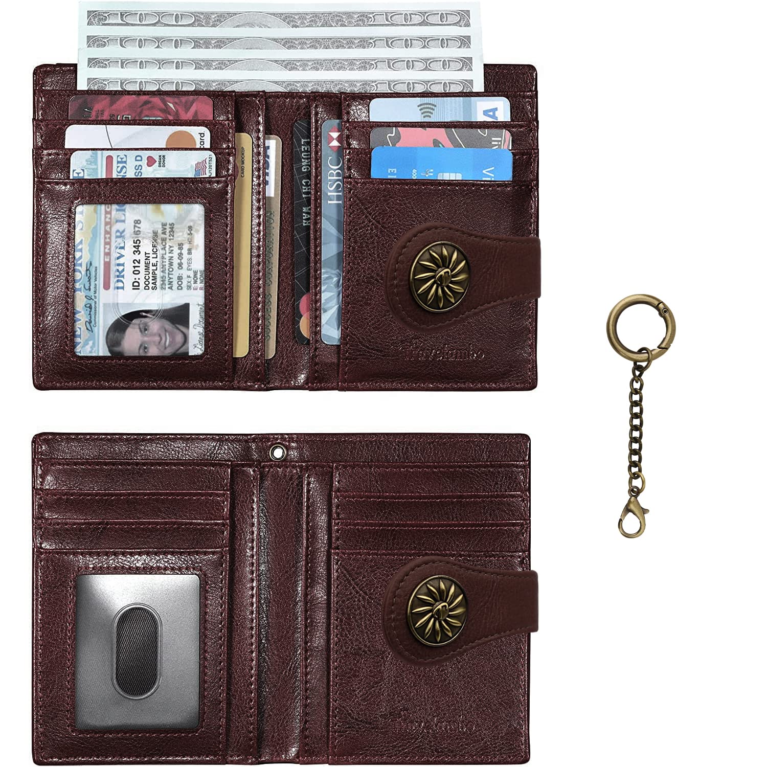 Travelambo Small Womens Wallet with 2 ID Windows, RFID Blocking Bifold Leather Card Holder Purse with Zipper Coin Pocket