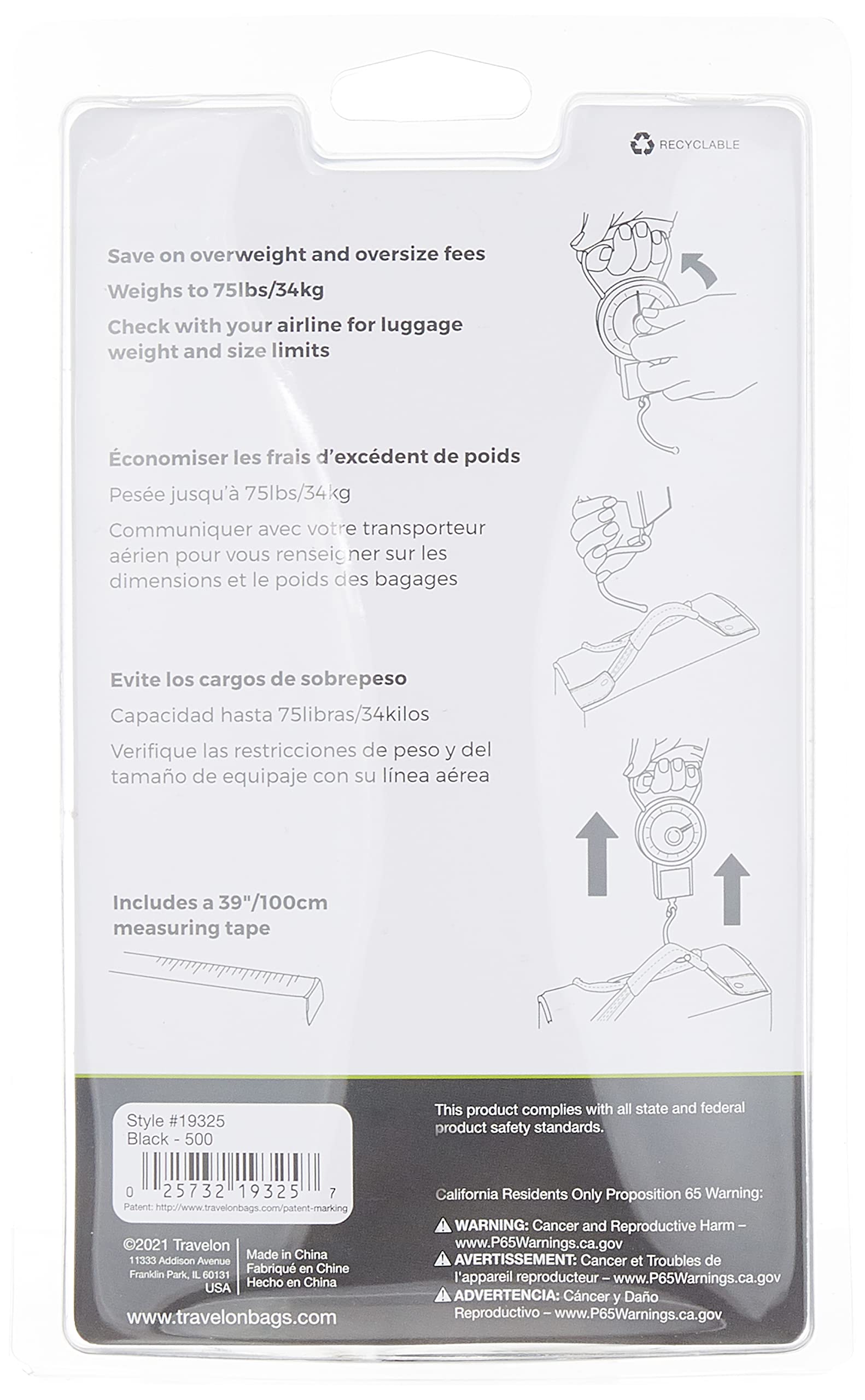 • The stop-n-lock luggage scale from travelon allows for a simple affordable solution to eliminate pre-trip packing guesswork and hefty overweight luggage fees, this easy to use luggage scale has a patented stop and lock feature, two hands track the weight of the bag and the second hand, stops and locks at that weight so you can set the suitcase down to read the dial, it also includes a tape measure to ensure bags are not oversized, take it with you on your trip to ensure you don't tip the scales on your way back