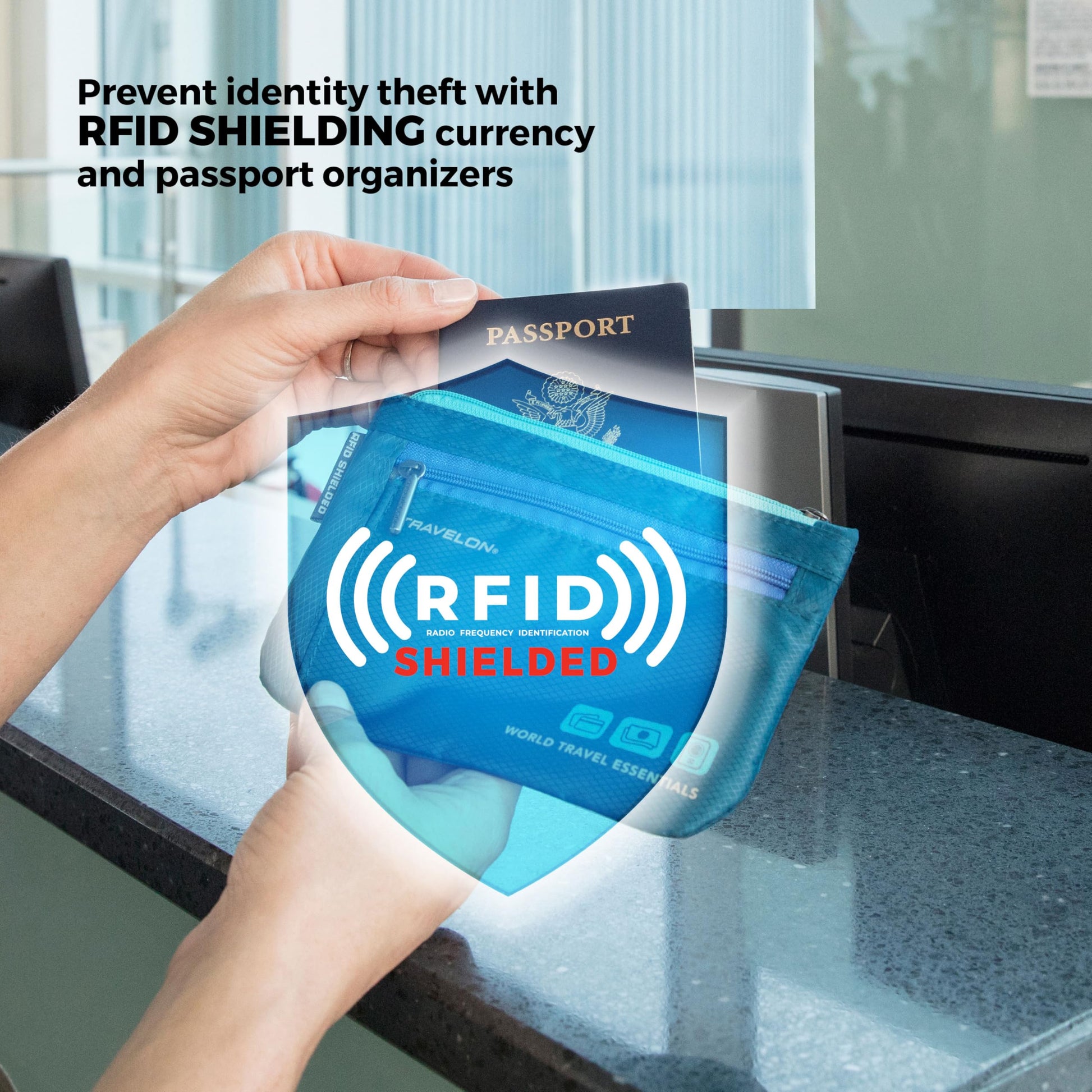 Organize multiple currencies, passports and cards in this 2 RFID Shielded pouches. Stylish and roomy enough to manage money, cards train tickets, receipts and more.