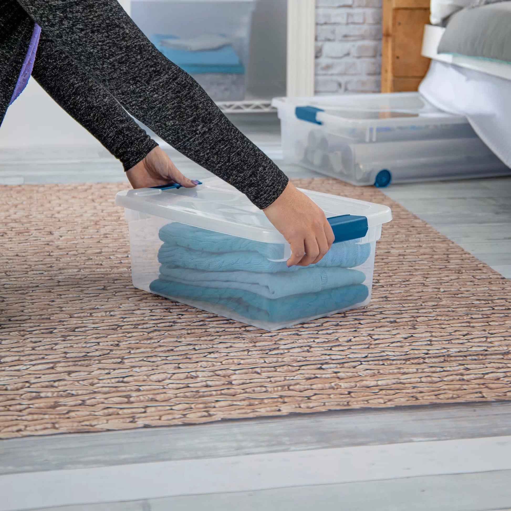 • PLASTIC TOTES WITH LIDS FOR STORAGE - The clear plastic containers and lids allow you to quickly and easily determine whats inside. No need to unstack the boxes and open them to find what youre looking for.