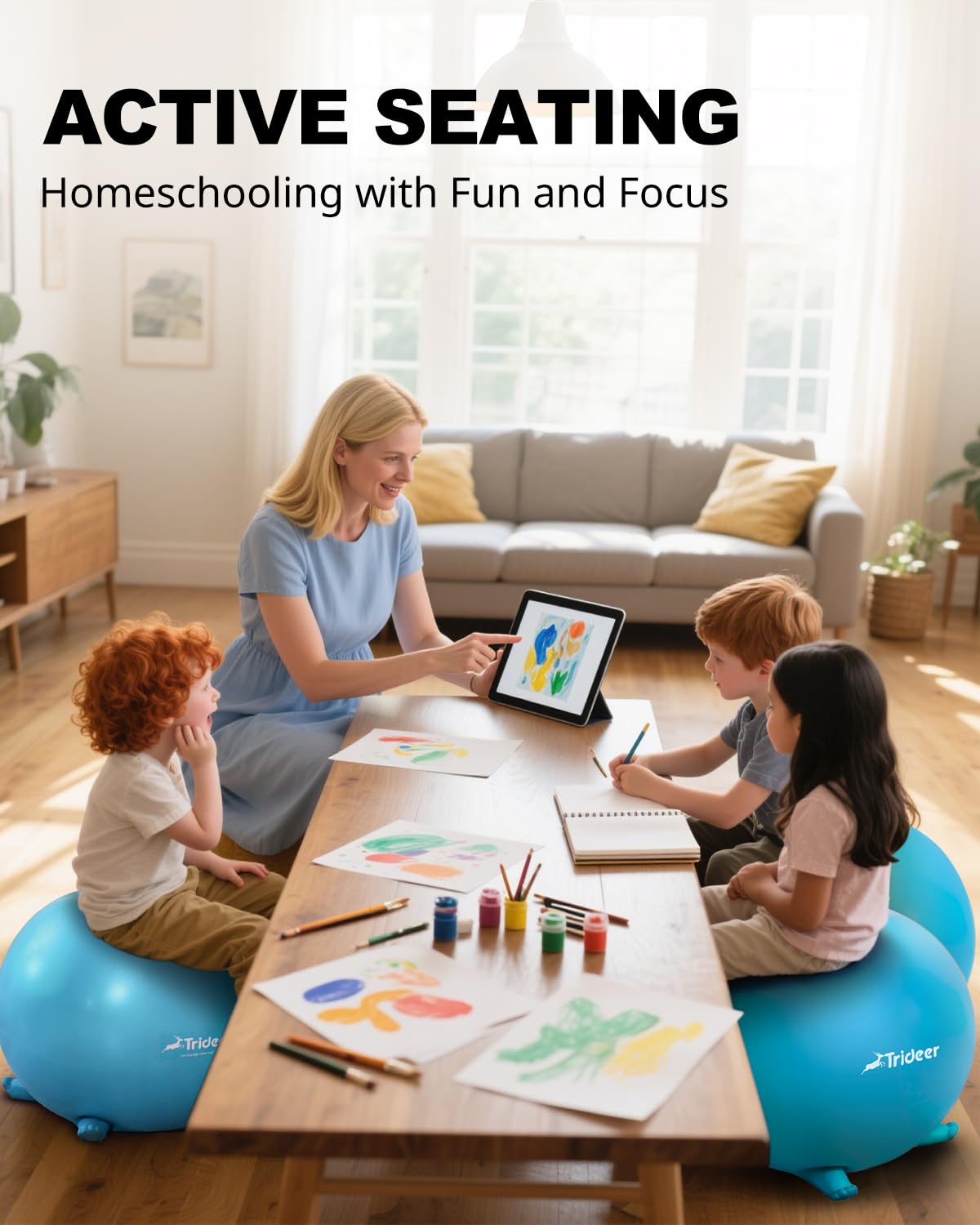 Trideer Flexible Seating for Classroom Elementary, Yoga Ball Chairs for Kids, Wobble Chair of School Supplies for Sensory Kids, Student Desk Chairs for Homeschool (Blue, 55cm)