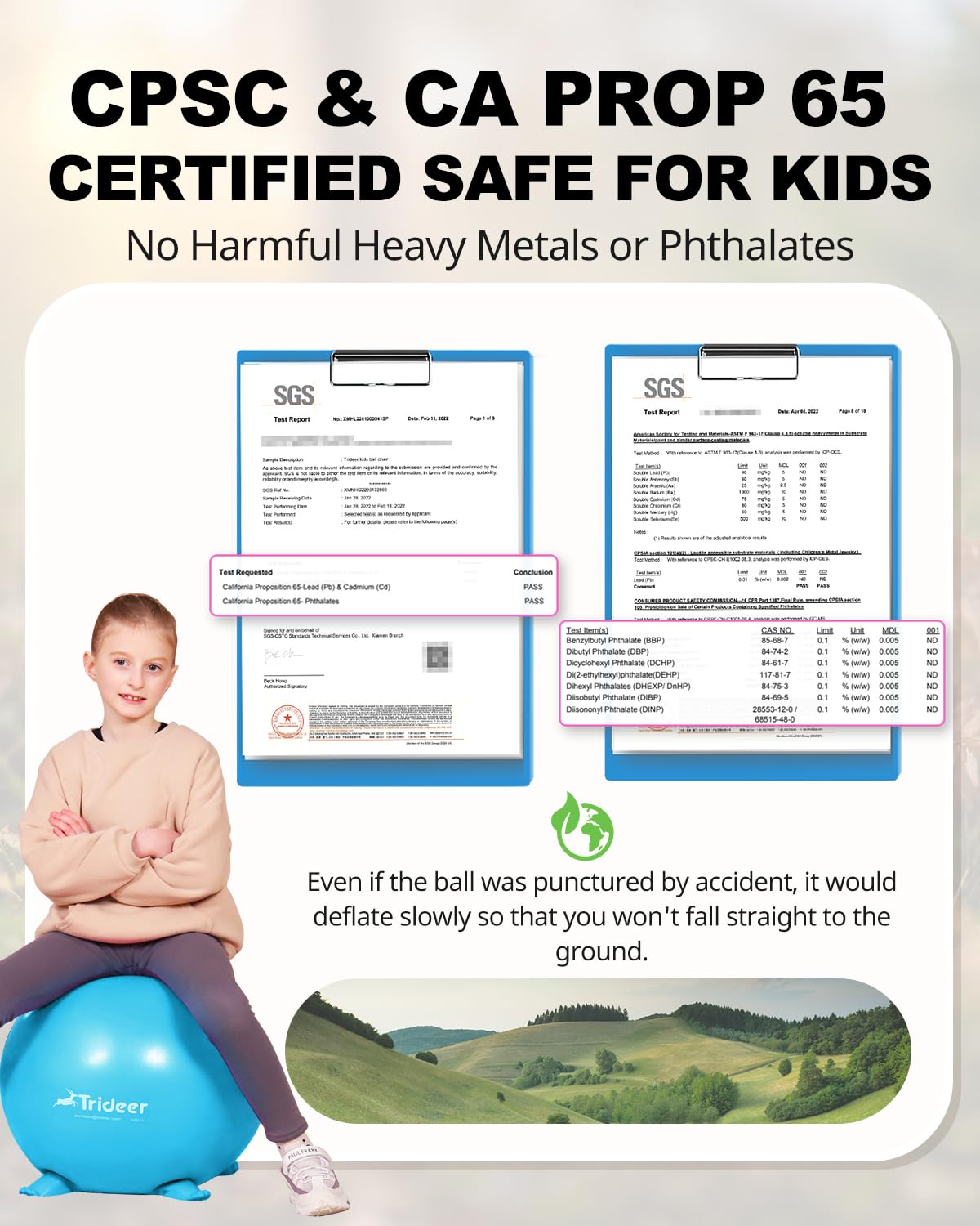 • 【Quality Parent-Child Time】When using our kids' yoga balls with other Trideer exercise balls for adults, you can exercise and play with your kids. It is a superb way to spend quality time with your kids exercising together on balancing balls.