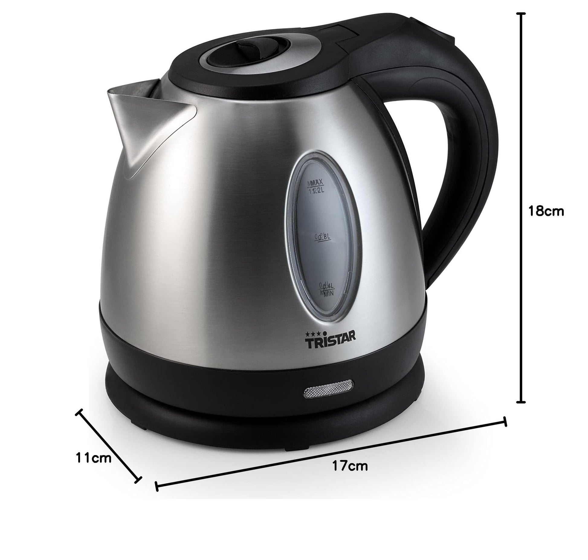 The Tristar WK-1323 kettle has a very elegant design and a large capacity of 1.2 litres. 1500W power ensures that the water boils quickly. Thanks to its compact design, you can easily transport the electric kettle. Perfect kitchen accessoryThe Tristar tea maker not only looks stylish with its stainless steel body, but is also extremely practical to use. As the cooker can be rotated 360° on its base, it is suitable for both left- and right-handed users. The tea maker can be removed to make filling and pouring easier. The water level indicator shows you how much water is in the stove. After the water has boiled, the kettle is automatically switched off. Safe to use: the WK-1323 kettle has a stainless steel housing with integrated handle and is made of a BPA-free material. Thanks to the non-slip feet, the kettle always stands securely on your worktop. Overheating and boil dry protection ensure that the electric stove switches off when the water has evaporated or gets too hot. Sophisticated designThanks to its compact size, the Tristar tea kettle can be taken anywhere. With its compact design, it is easy to carry. The operation is via an on/off switch, whereby you can immediately see whether the device is switched on using the indicator light. The filter keeps the water free of limescale deposits. Box contents: Tristar kettle, base, instruction manual (English language not guaranteed). Reasons for choosing the Tristar WK-1323 kettle: practical tea maker with elegant stainless steel housing and 1.2 litre capacity. 1500 W power ensure that the water boils quickly. Easy to use with on/off switch and indicator lamp as well as automatic switch-off. Thanks to overheating and boil dry protection as well as non-slip feet. a filter to a filter to to Retaining storage