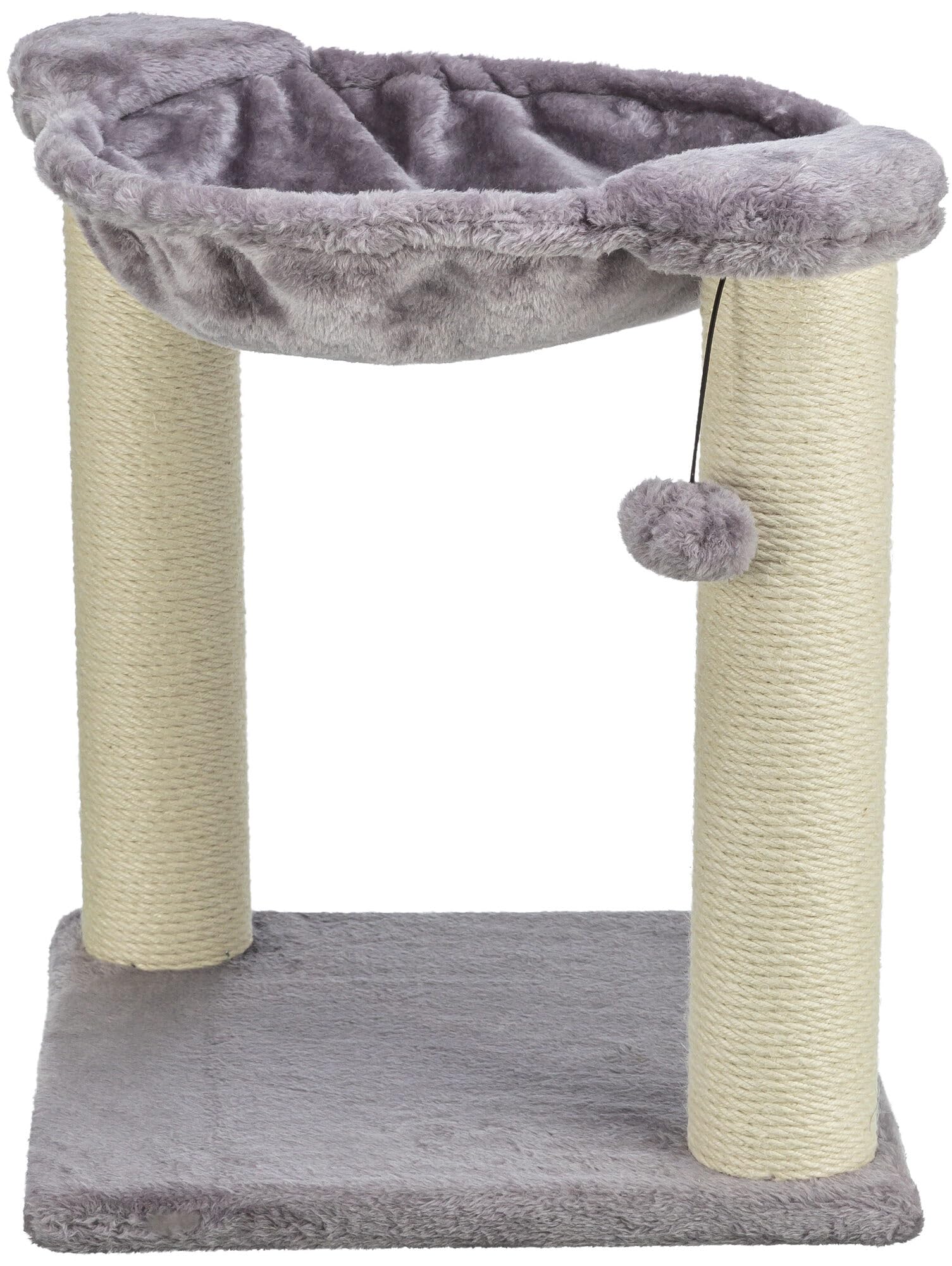 TRIXIE Baza Cat Scratching Post 19,7 Inch - with Durable Sisal Rope and with Fluffy Hammock and Dangling Cat Toy - in Gray