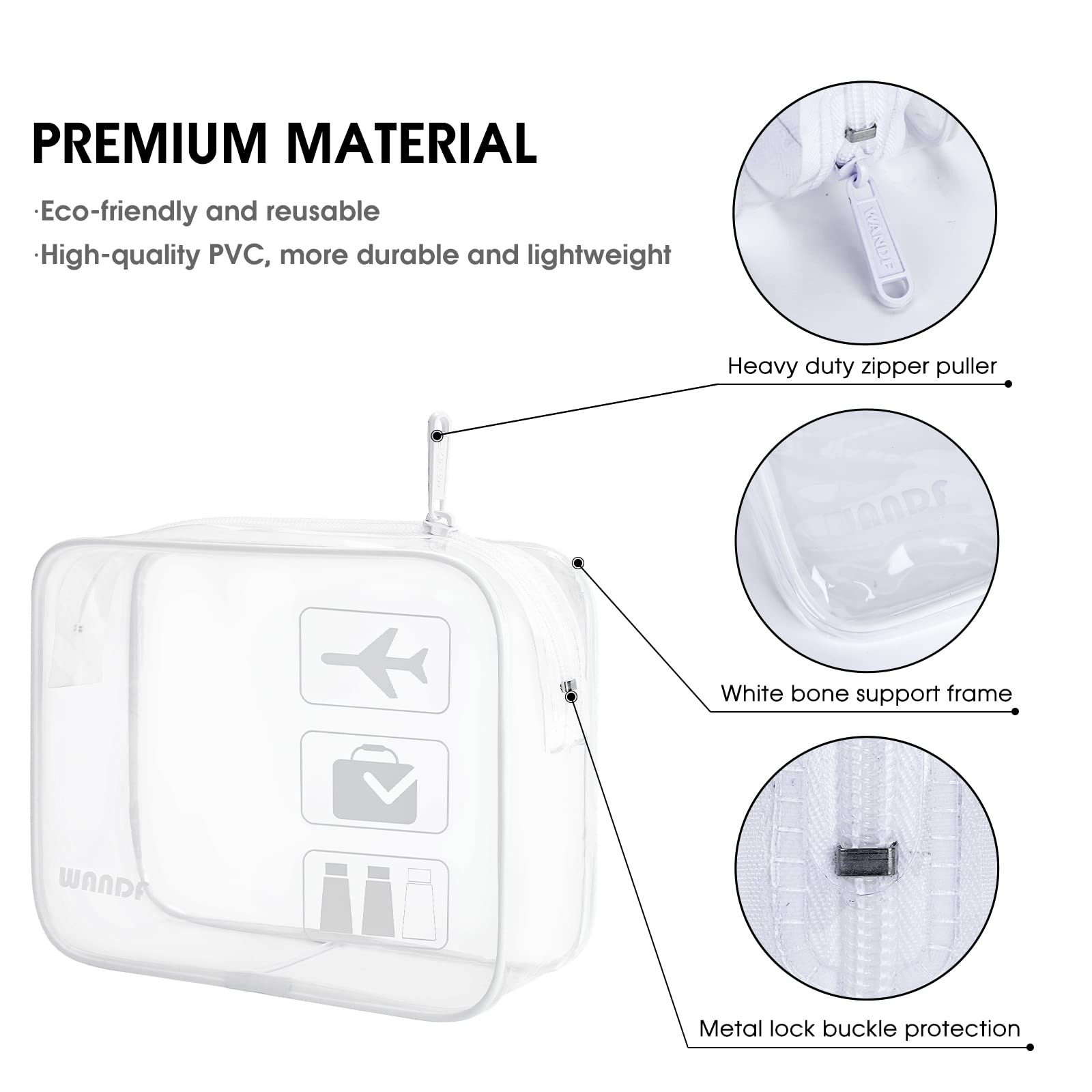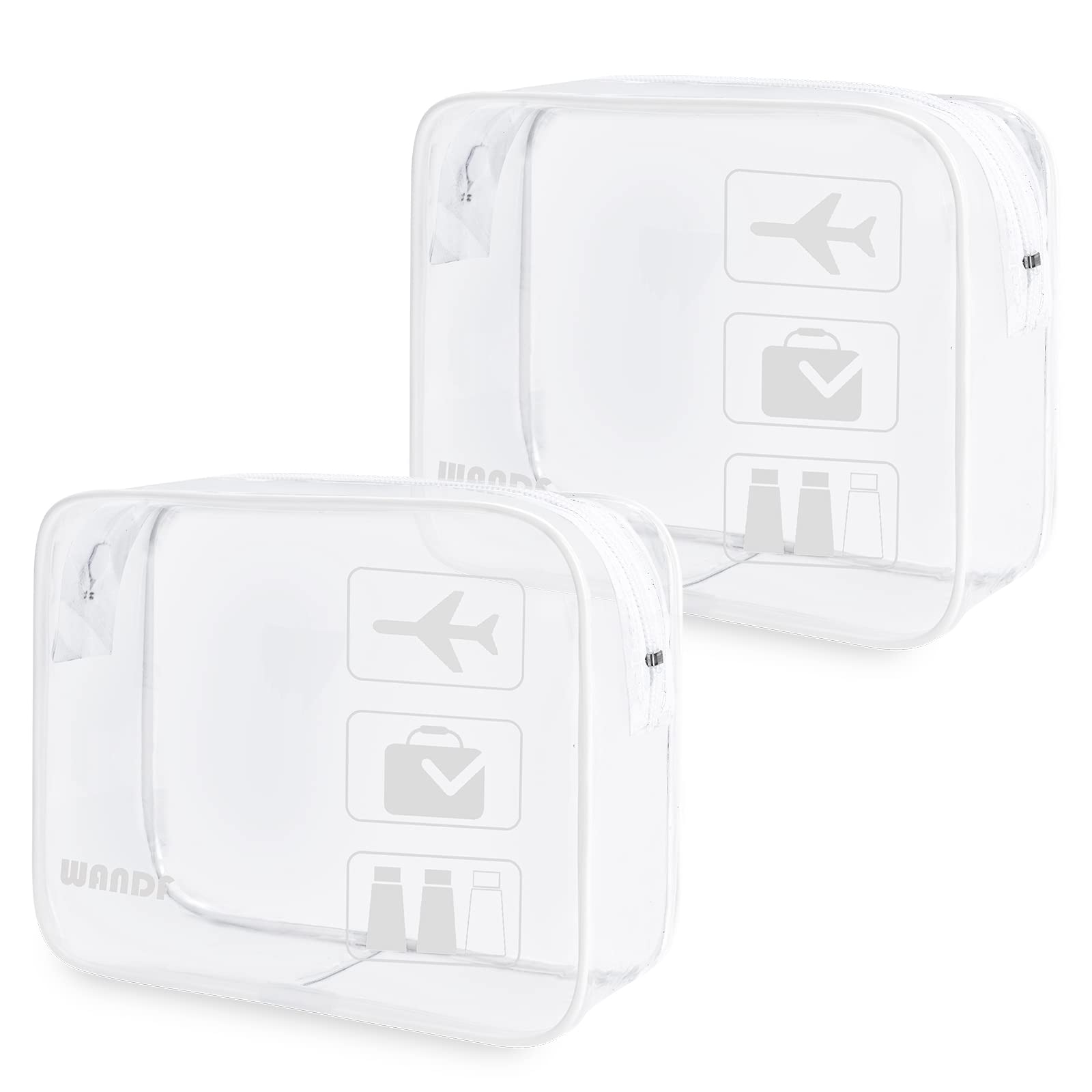 TSA Approved Clear Travel Toiletry Bag wih Zippers Carry-on Travel Accessories Quart Size Toiletries Cosmetic Pouch Makeup Bags for Men and Women (2pcs White)