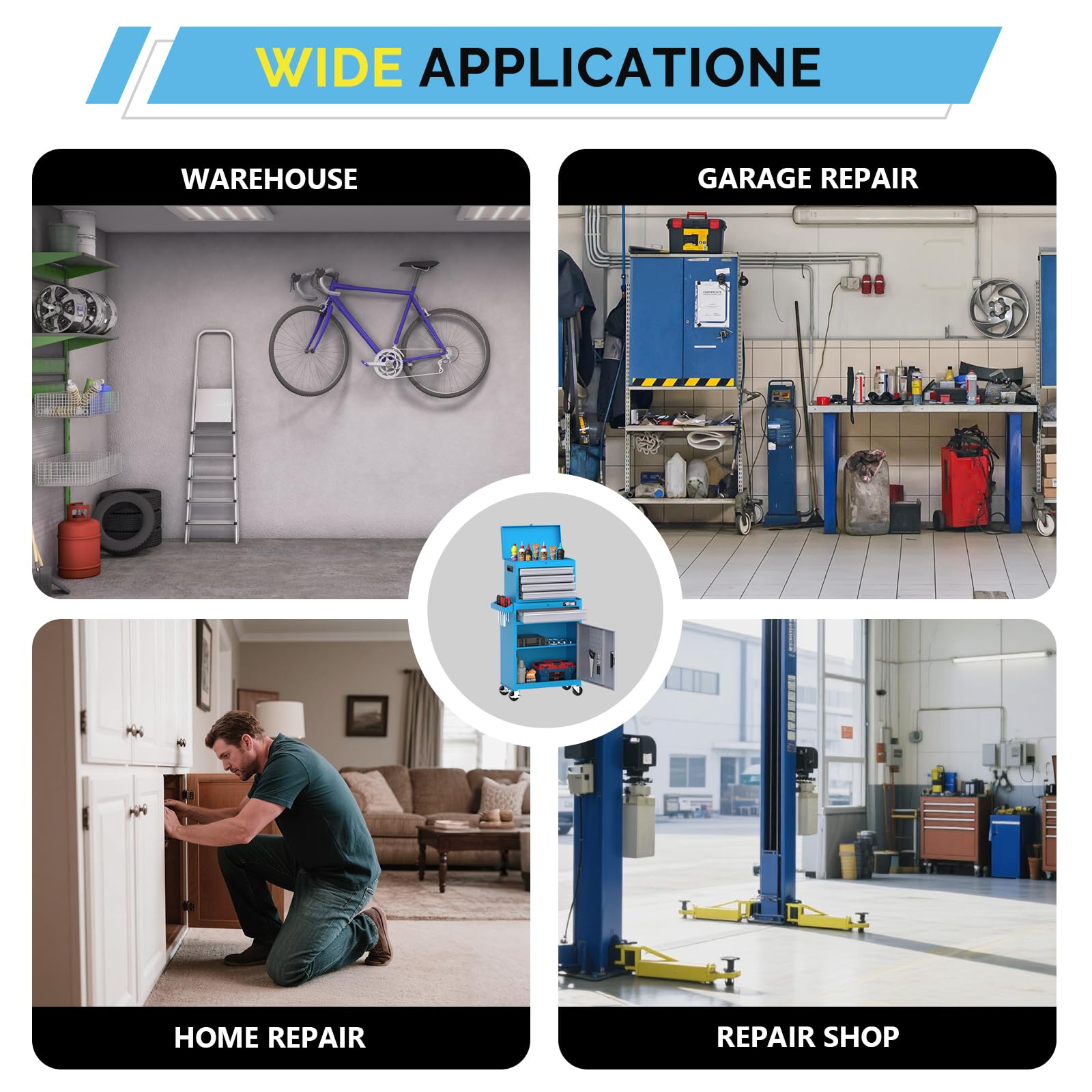 • 【WIDE APPLICATIONE】 With easy mobility and fair storage space, the tool storage chest & cabinet combo can be utilized in various occasions like garage, warehouse, workshops, repair shops, etc.