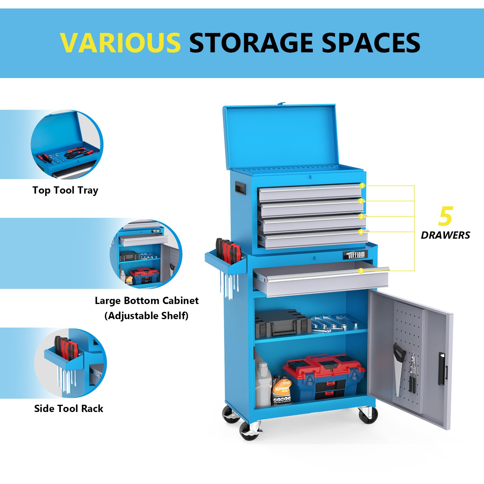 TUFFIOM 5-Drawer Rolling Tool Chest, Tool Storage Cabinet w/Drawers, Lockable Wheels, Detachable Top & Adjustable Shelf, Mechanic Tool Organizer Box for Garage, Workshop, Warehouse & Repair Shop