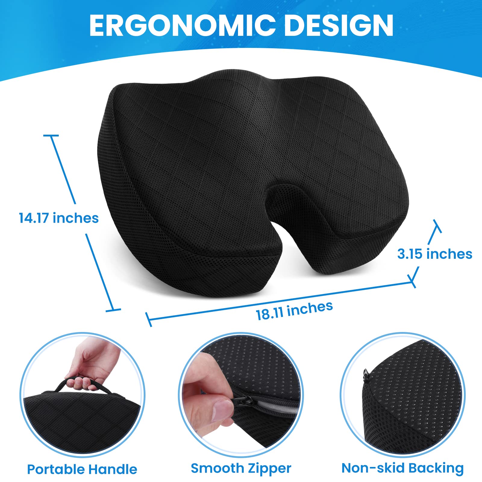 • 【Premium Memory Foam】★Our office chair seat cushion is made of 100% pure memory foam, soft and firm, uses your own body heat to adapt to your curves, ergonomic 'U' shaped hollow design for superior comfort, effectively support the coccyx, relieve the hip pressure caused by sitting for long periods.