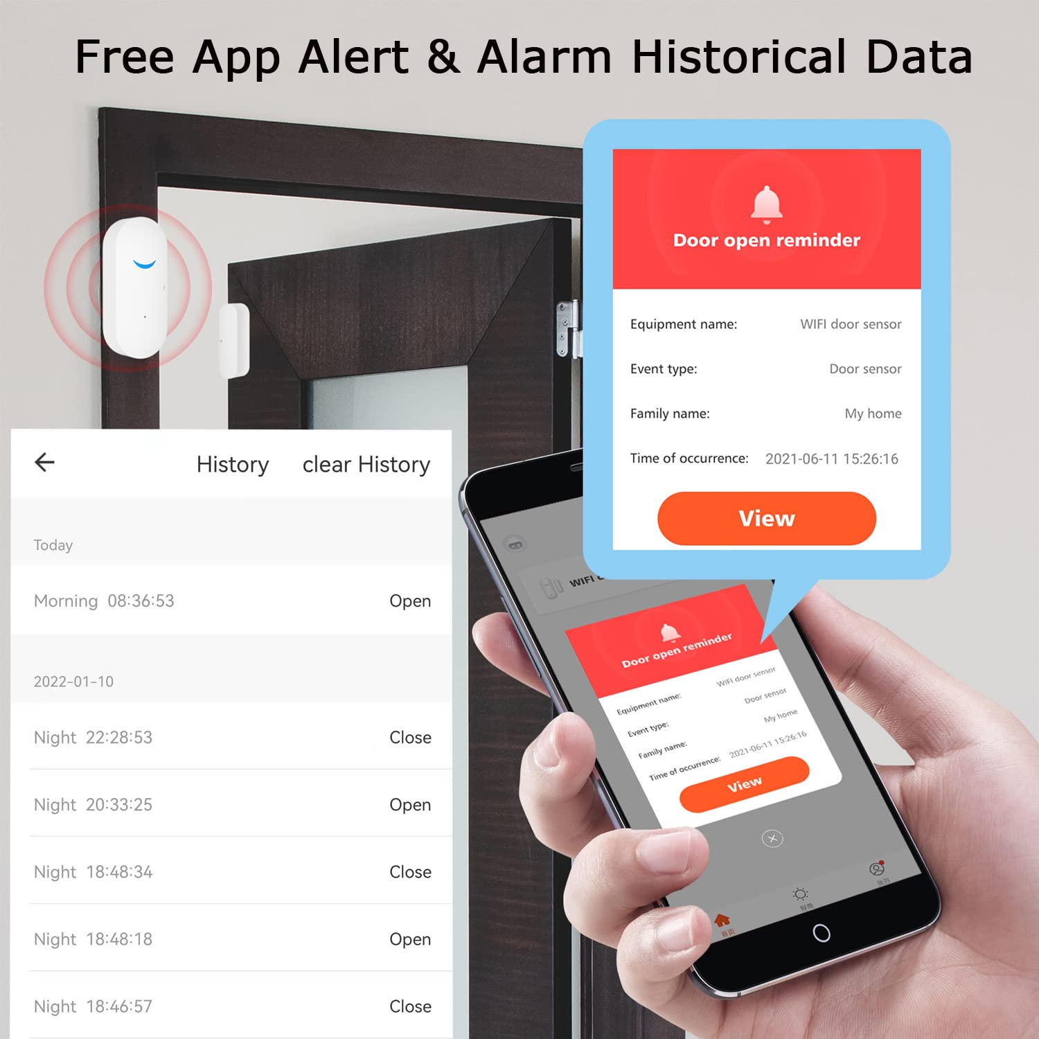 • APP ALERTS ON YOUR PHONE: Wifi door sensor, 'Tuya Smart' or 'Smart Life' APP control. No hub required and No fees charge. When door/window is opened or closed, the sensor will push instant notification to your smartphone immediately. You can check your house on APP whatever where you are.