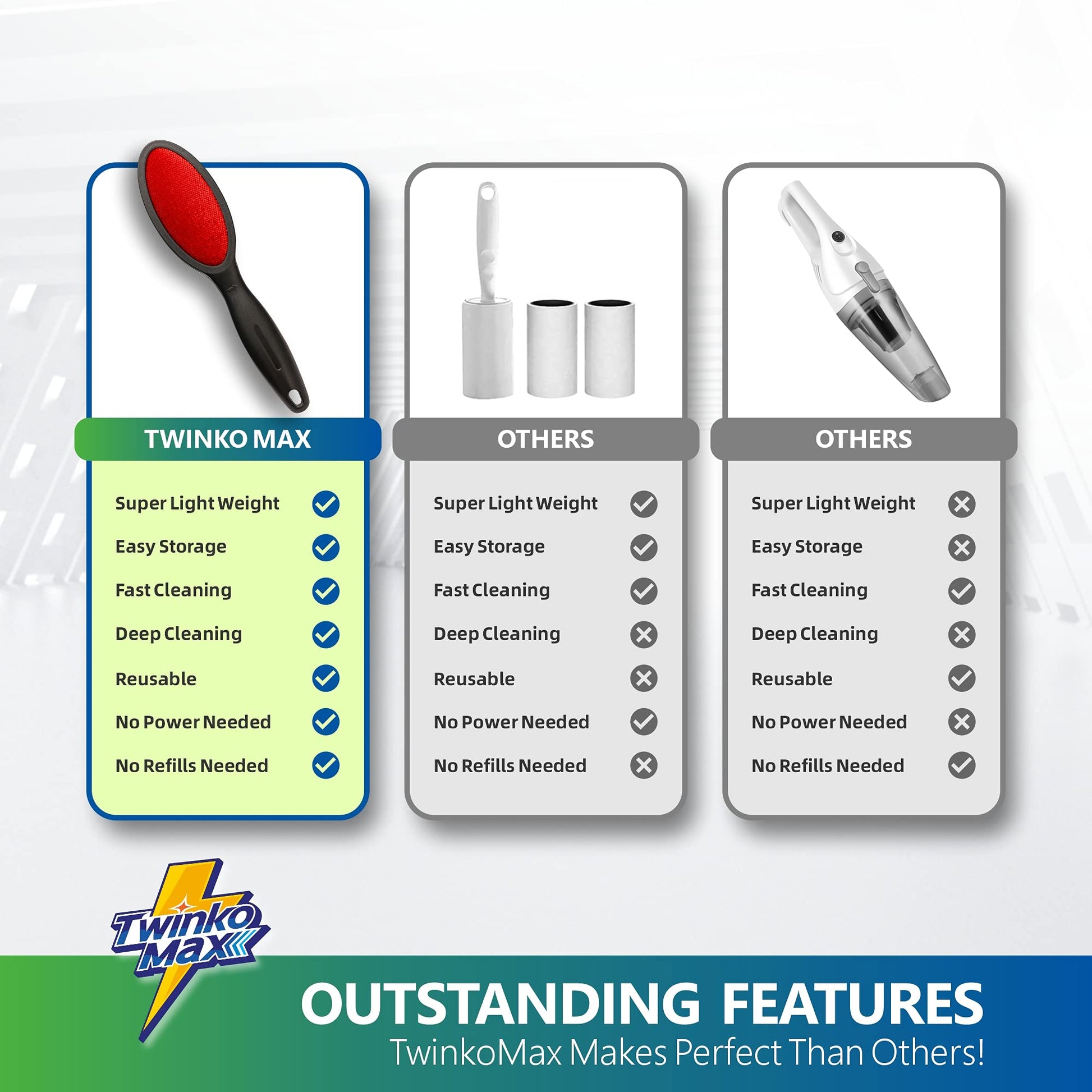 Twinko Max Lint Brush, Lint Remover, Pet Hair Remover, Clothes Brush, Magic Lint Remover Brush, Sheet and Carpet Cleaning Brush, 2-Sided and Reusable, No Need Lint Roller Refill.
