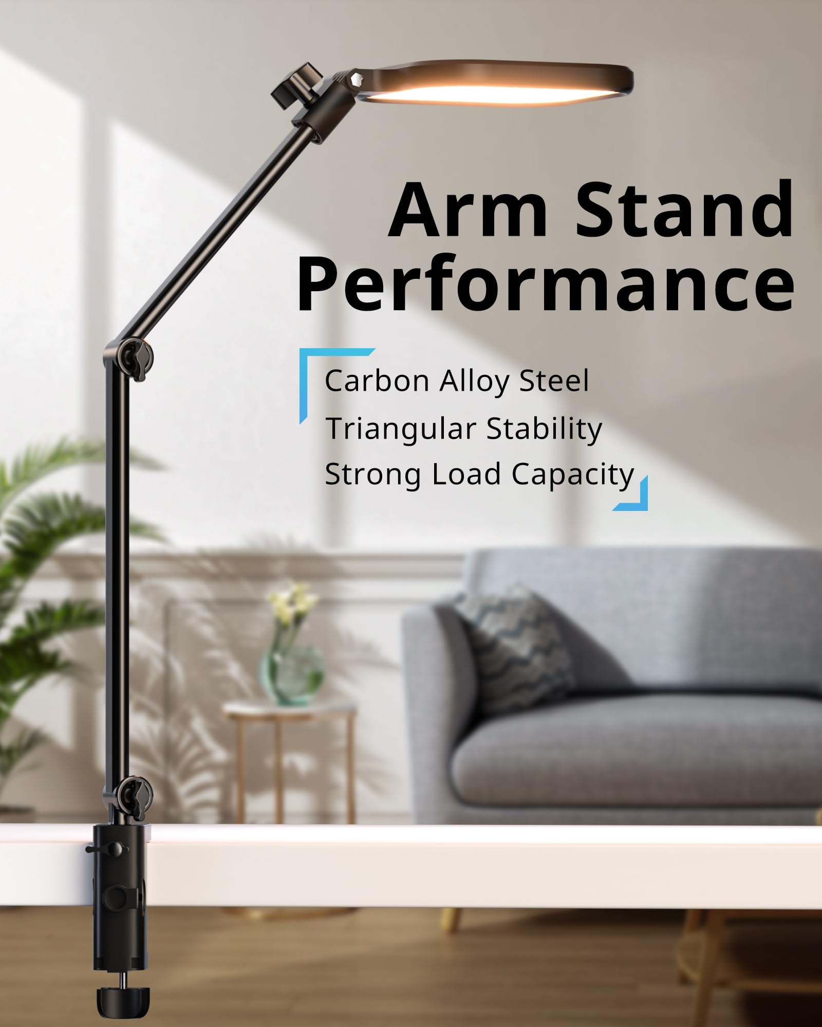 • [Flexible and Space-Saving Design] With dual arms measuring 13.5 inches and 14.5 inches, users can easily adjust the lamp's position to ensure light covers the desired area while saving valuable desktop space. The desk clamp expands to 2.5 inches, accommodating different tabletop thicknesses for secure installation, making it convenient for use in various environments.