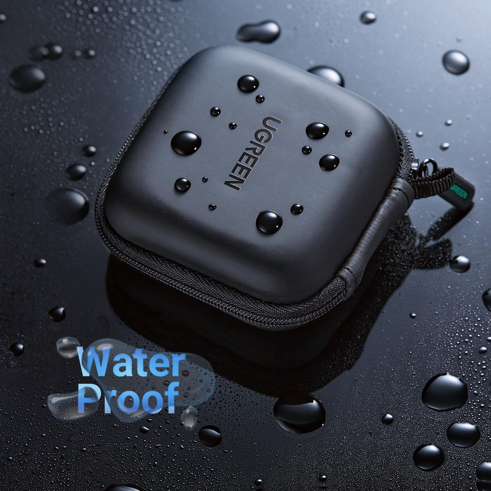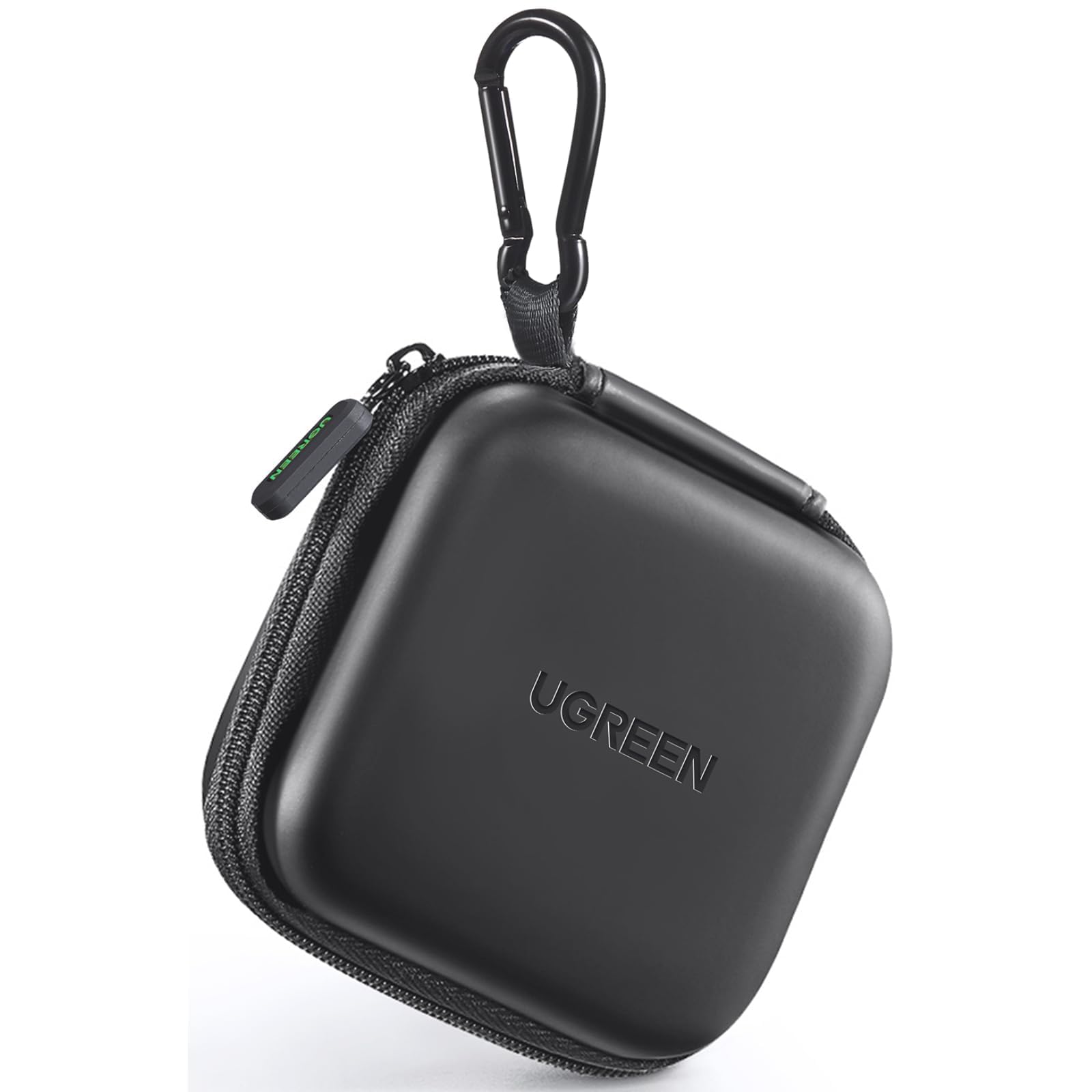 UGREEN Earbud Case, Waterproof Earphone Case Pouch Compatible with AirPods Pro Headphone Case Holder with Stainless Steel Carabiner, for Headphones, Earbuds, SD Memory Card, Camera Chips, Black