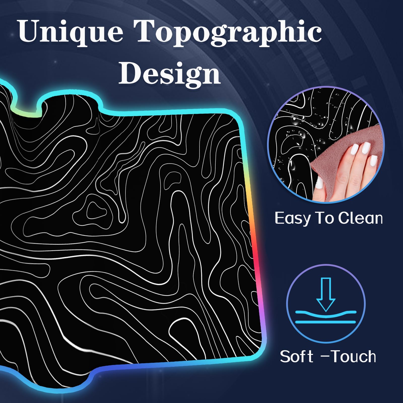 UJoowalk RGB Gaming Mouse Pad, Topographic Large, LED XL Keyboard and Mouse Pad, Desk Mat, 31.5 x 11.8 in, Black Minimalist Line Desk Pad