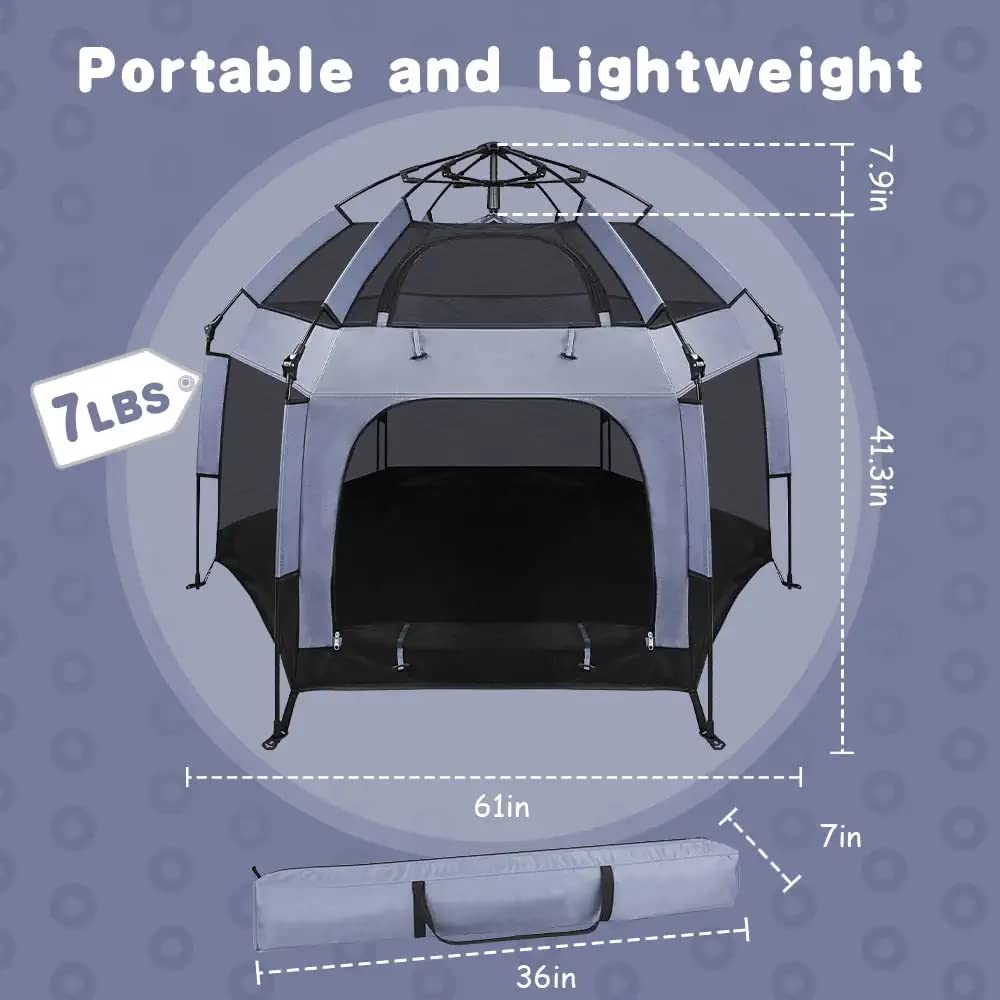 UJUJIA Baby Play Yard Outdoor Baby Playpen with Canopy Beach Tent for Kids and Toddlers Portable Lightweight Pop Up Pack and Play Playards with Travel Bag,61"*61"*49.2" Grey