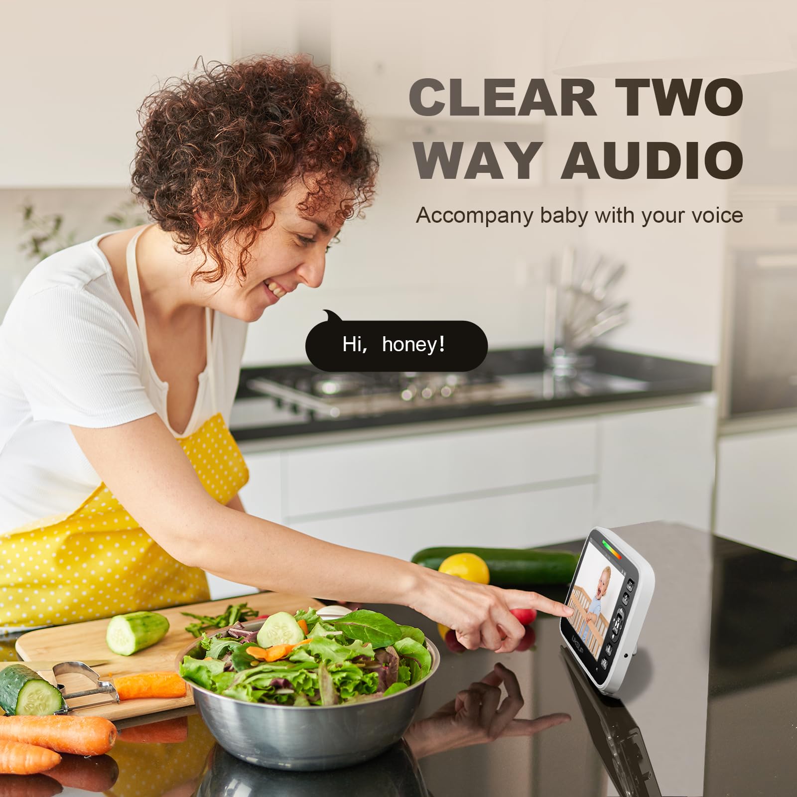 • Long-lasting battery & VOX function: The baby monitor camera is fitted with 3500 mAh rechargeable battery, giving you 30Hr of Battery Life for baby video and audio streaming in VOX Mode and 10-Hr With Screen On, allowing you to stay connected with your baby throughout the night. When the video baby monitor picks baby cries over VOX mode, the screen automatically turns on to virtually alert you on the welfare of your baby while saving on power
