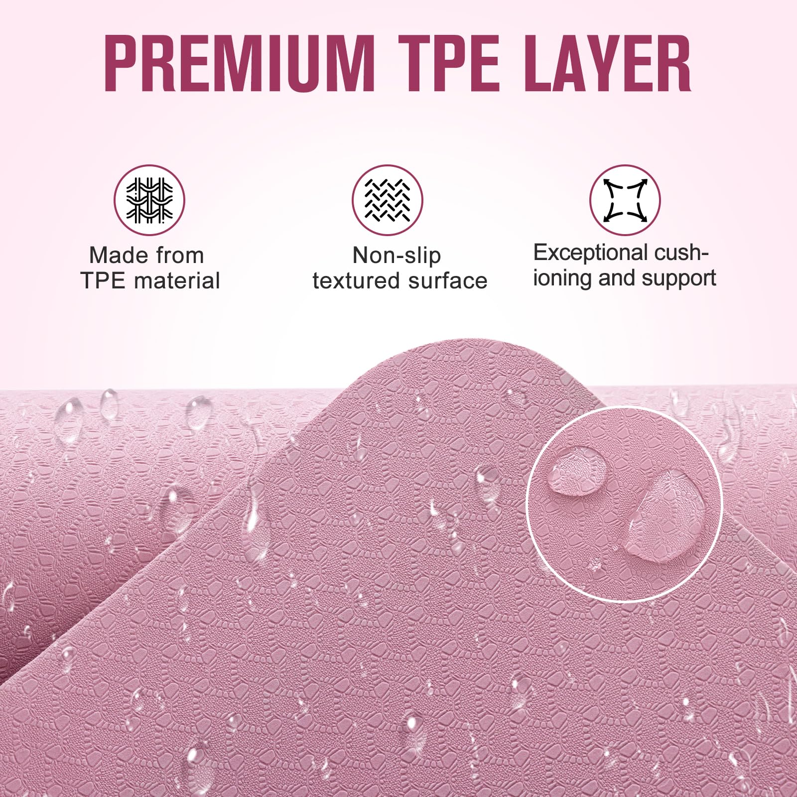 • NON-SLIP & ECO-CONSCIOUS: This thick exercise mat combines natural rubber and recyclable TPE for a durable and eco-friendly practice. Its textured surfaces on both sides ensure a secure grip. And the rubber layer provides exceptional grip even during sweaty sessions.