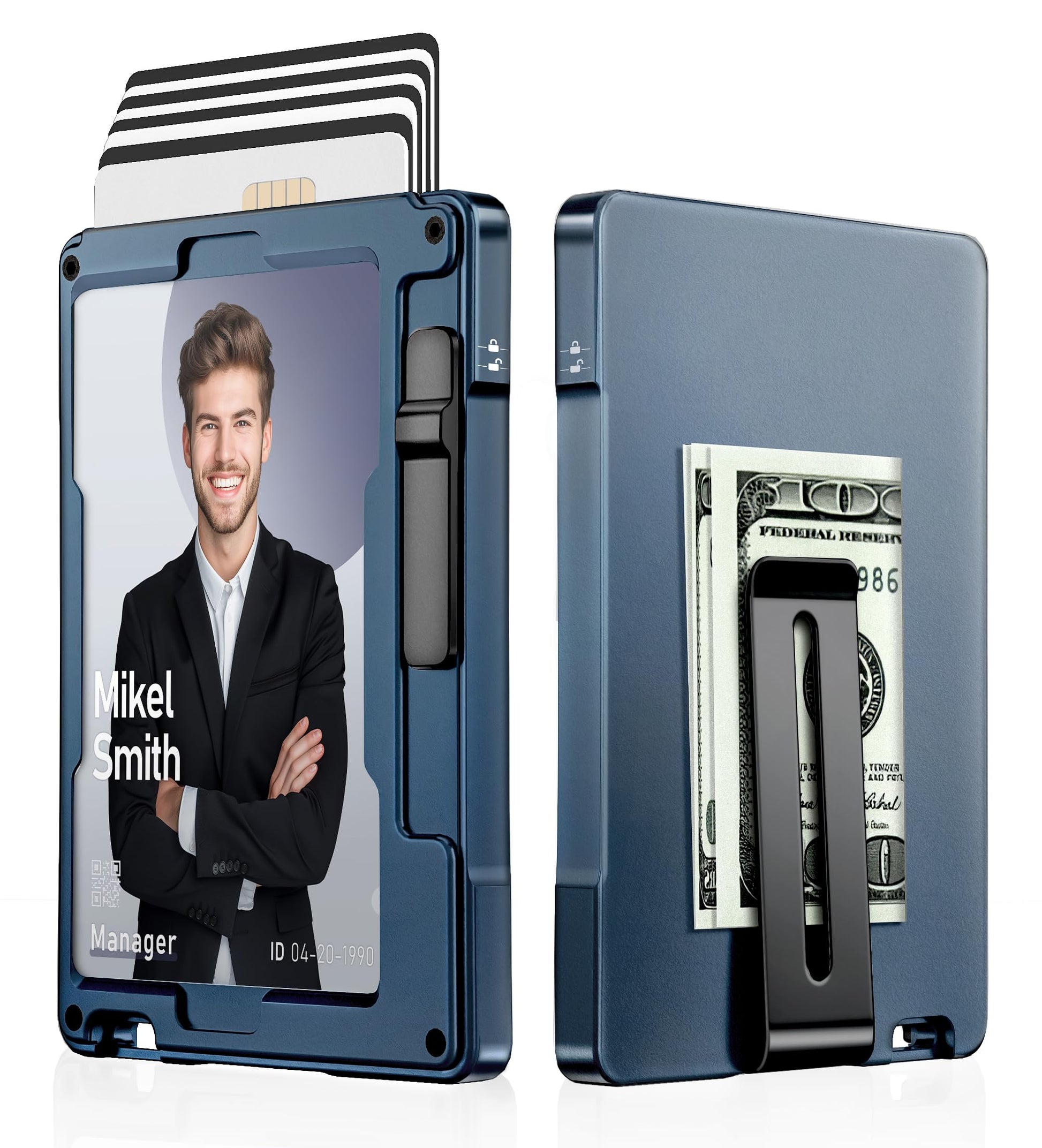 umoven Minimalist Wallet for Men, Slim Aluminum Metal Money Clip Card Holder, Pop-Up Card Case, RFID Blocking Mens Wallet with ID Window, Front Pocket Wallet for Men(Blue)