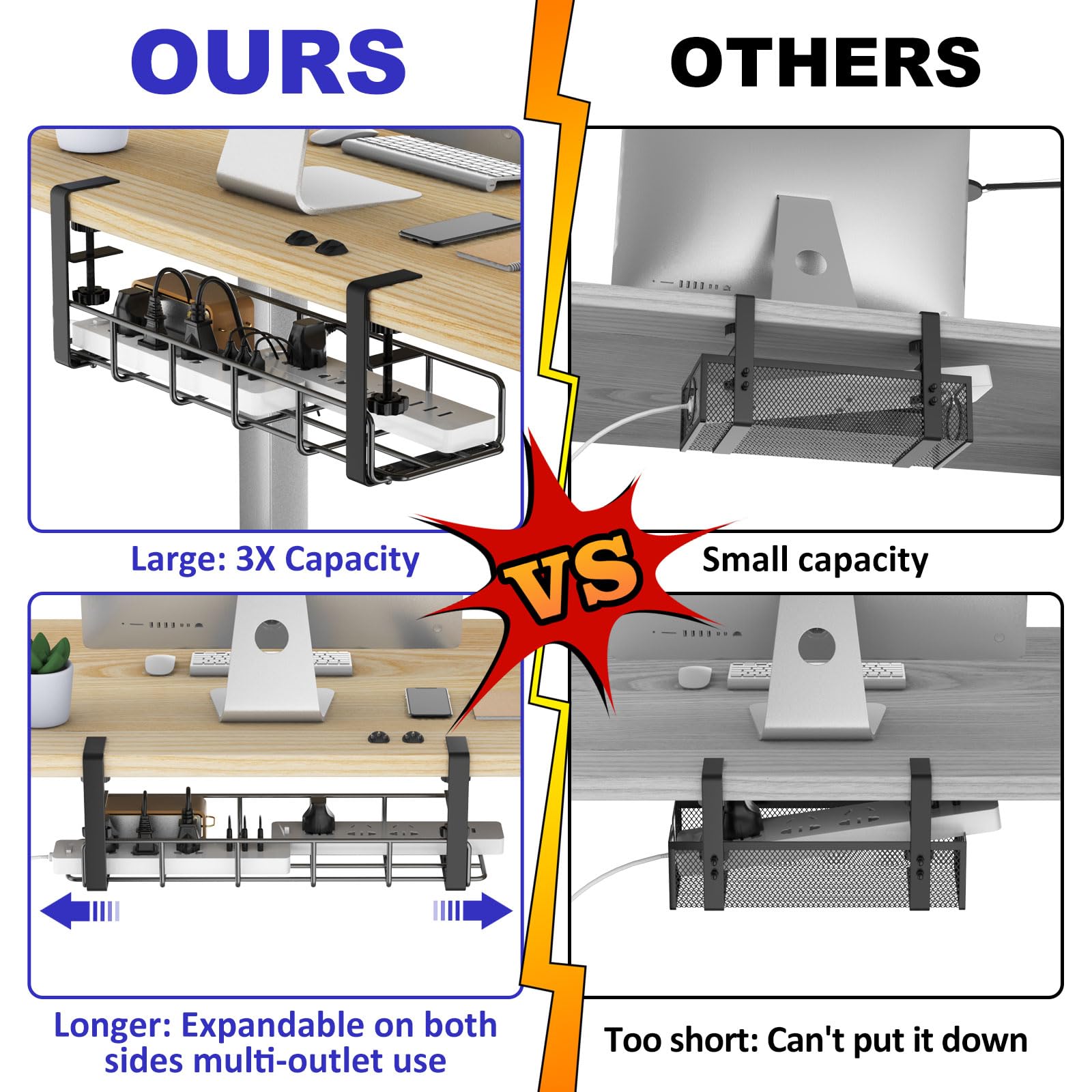 • STRONG & STURDY : Made of powder-coated carbon steel for long life, this new wire hiders which is quiet stable, Hollow curved design cable management tray under desk can easily hold power strip and more easy to organize cable wires.