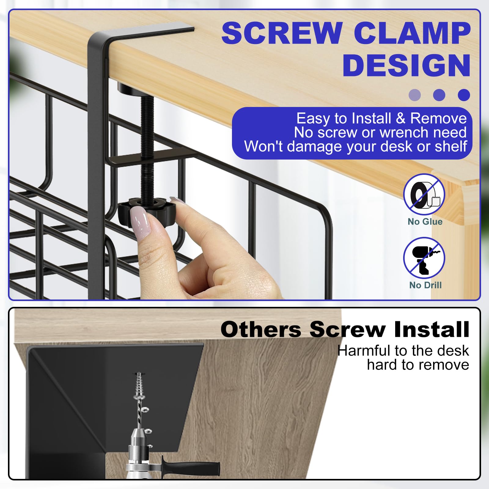 Under Desk Cable Management Tray, 15.7'' No Drill Steel Desk Cable Organizers, Wire Management Tray Cable Management Rack, Desk Cable Tray with Wire Organizer and Desk Cord Organizer