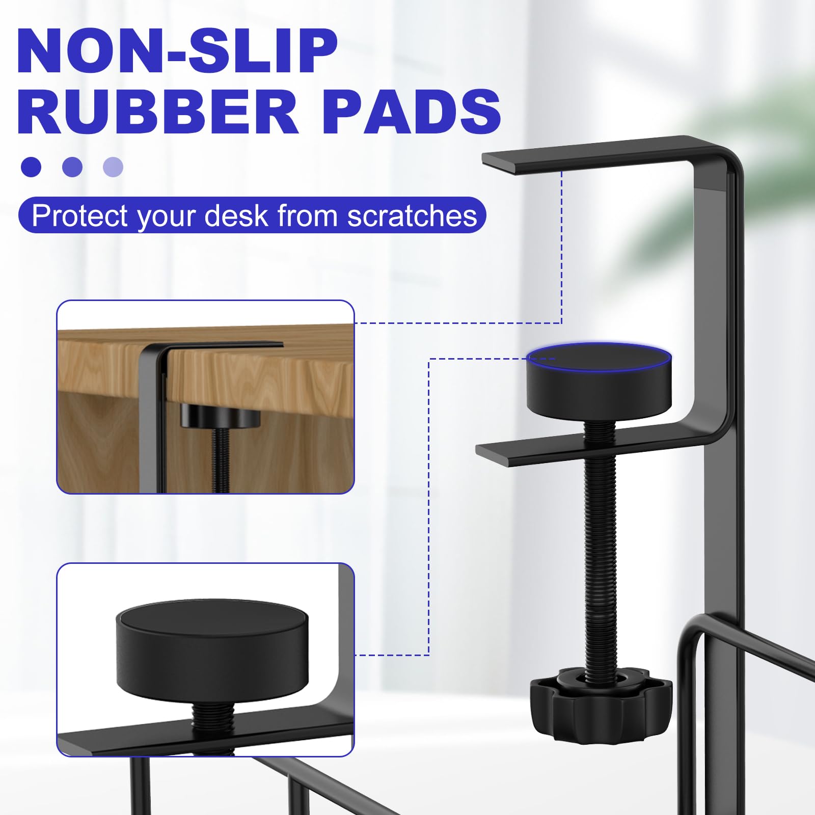 • SILICONE DESIGH & ADVANTAGES : Soft rubber pads on adjustable and removable clamps protect your desk or table from scratches. No Dust Accumulation, Anti-overheating, Flexible cable adjustment, Extra large capacity.