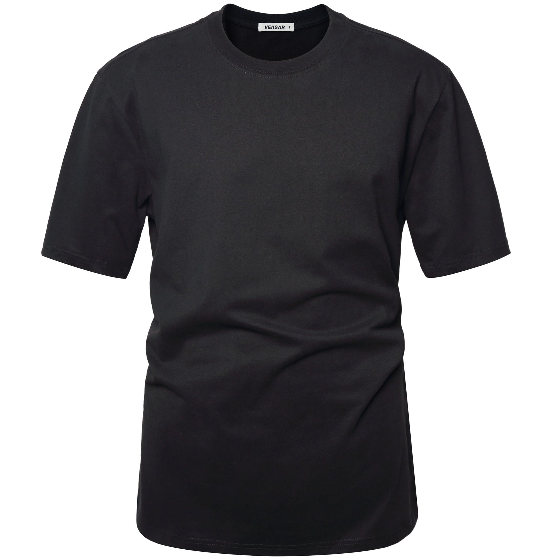 VEIISAR Men's Heavy Weight Crew Neck T-Shirt Mens Premium Cotton Tee Black L